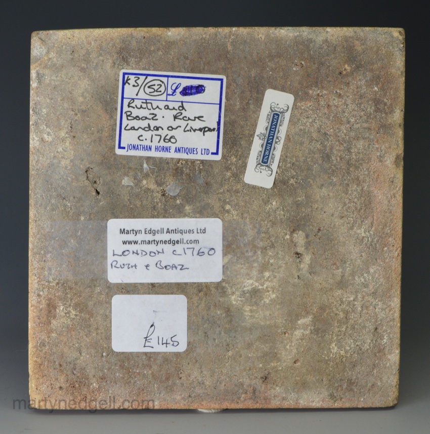 London delft biblical tile of Ruth and Boaz, circa 1760