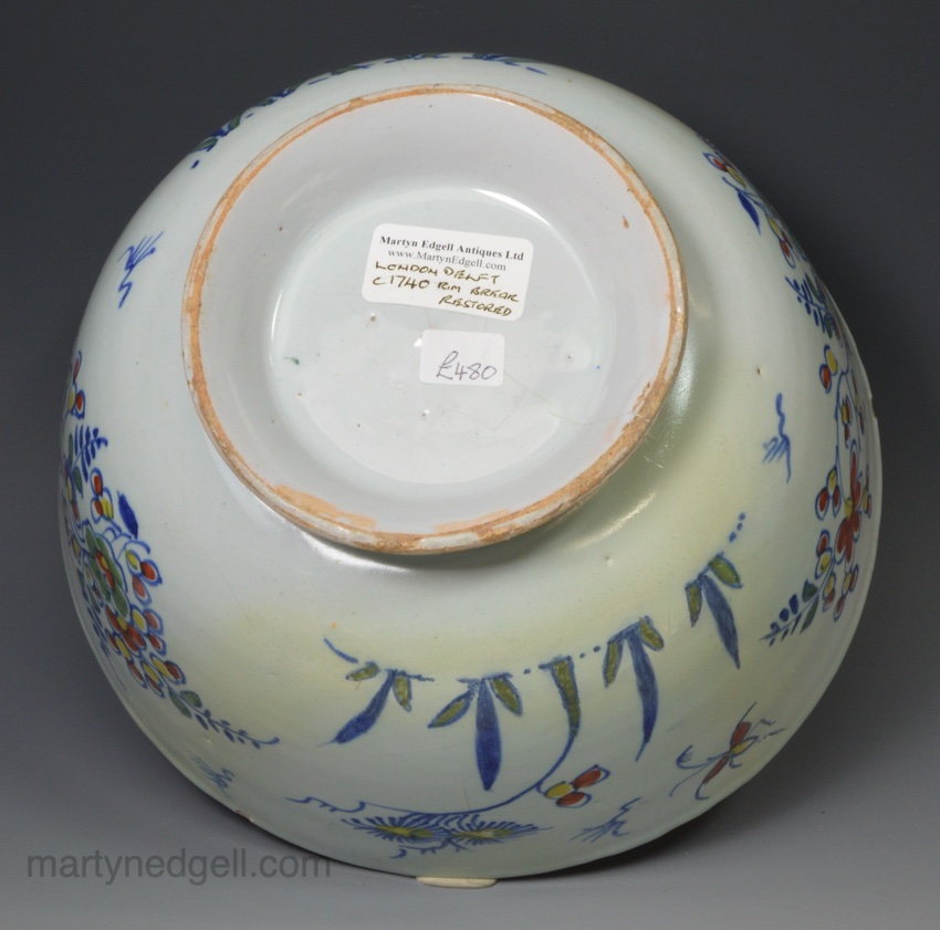 London delft polychrome bowl circa 1740
