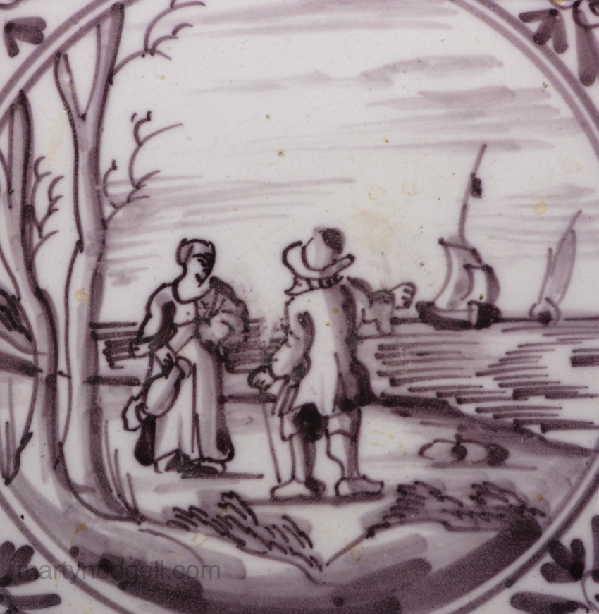 / London delft tile, circa 1750