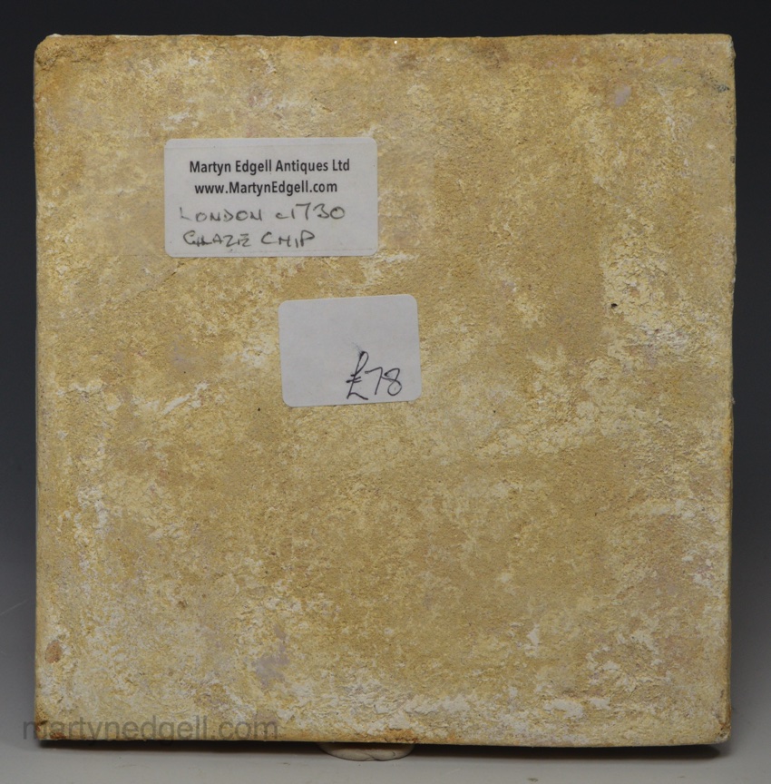 / London delft tile decorated in blue, red and green florals, circa 1730