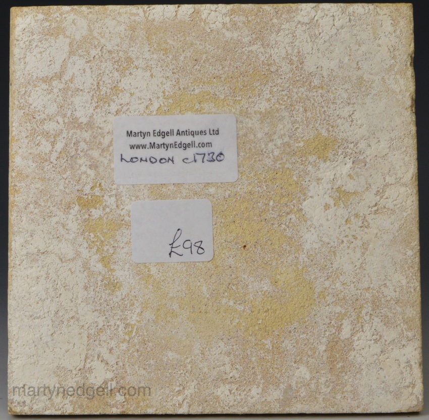 / London delft tile painted in blue, circa 1730