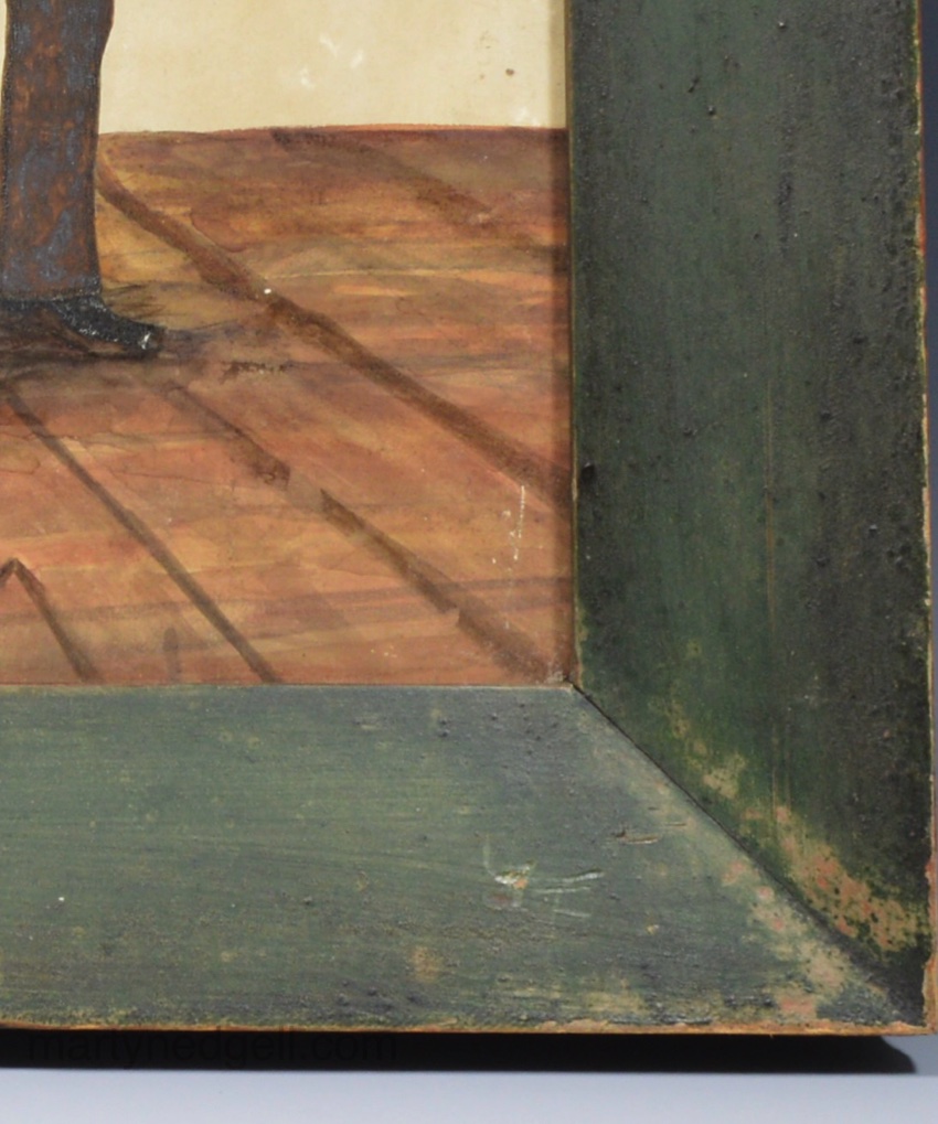 Original green painted oak frame, overall dimensions: 19″ by 14 ⅝”