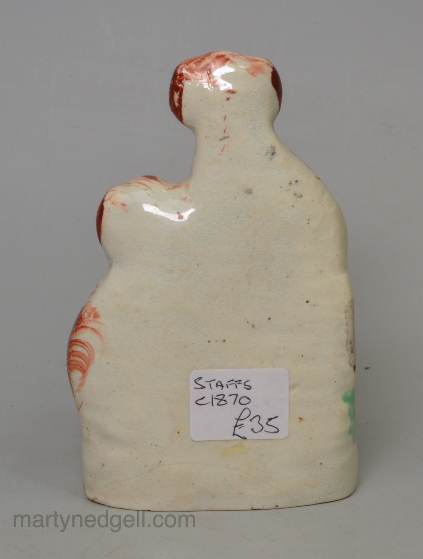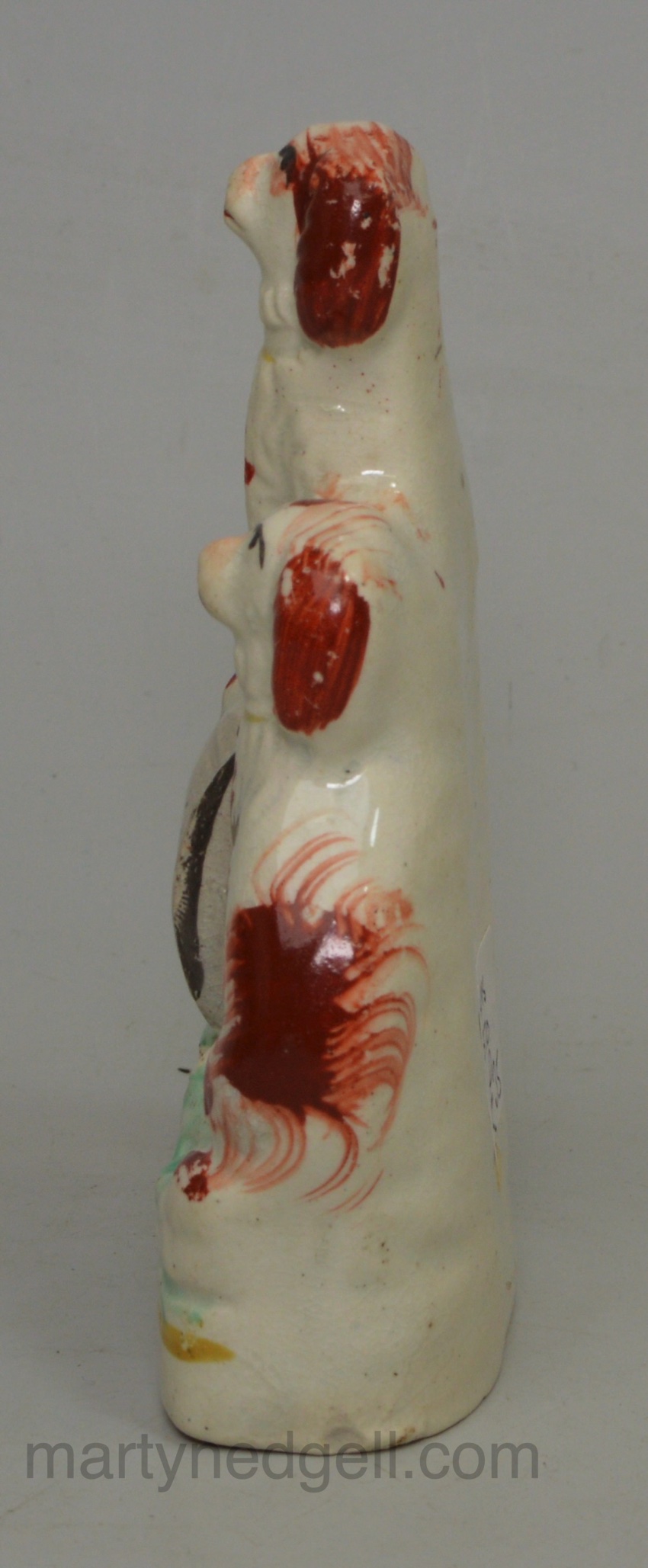Pair of Staffordshire pottery spaniels on a barrel, circa 1870