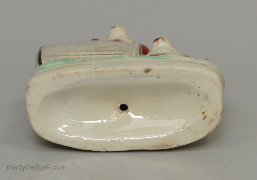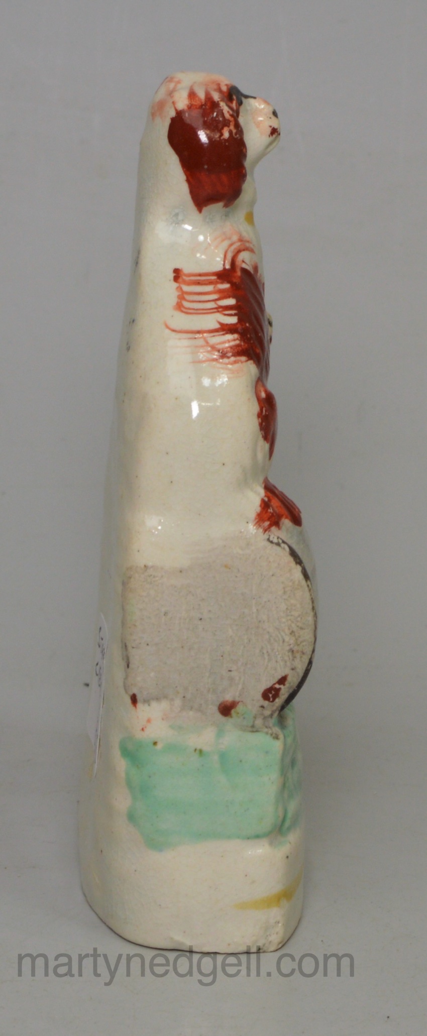 / Pair of Staffordshire pottery spaniels on a barrel, circa 1870