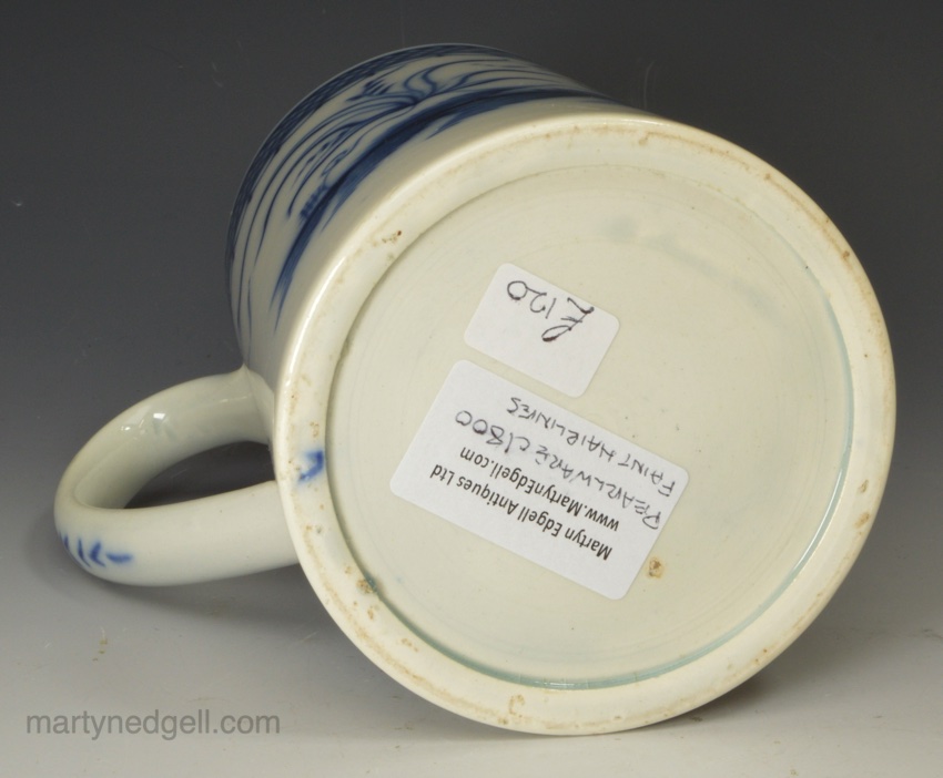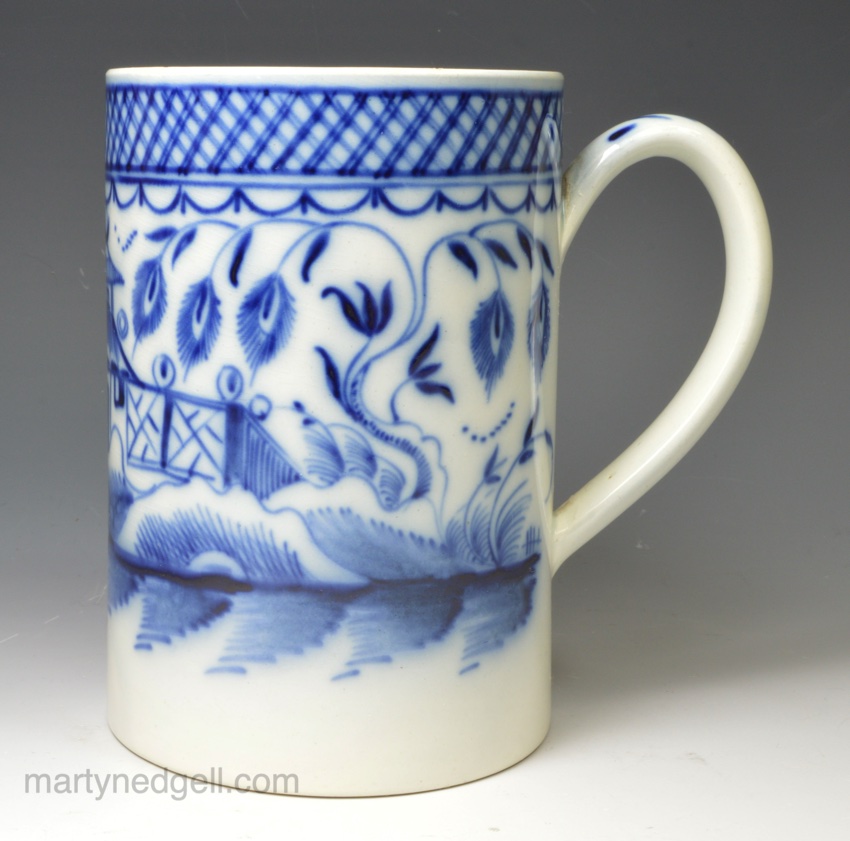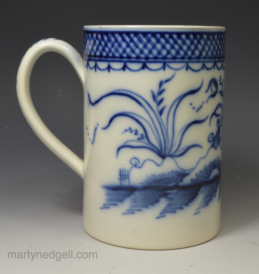 / Pearlware mug decorated with blue pagoda under the glaze, circa 1800