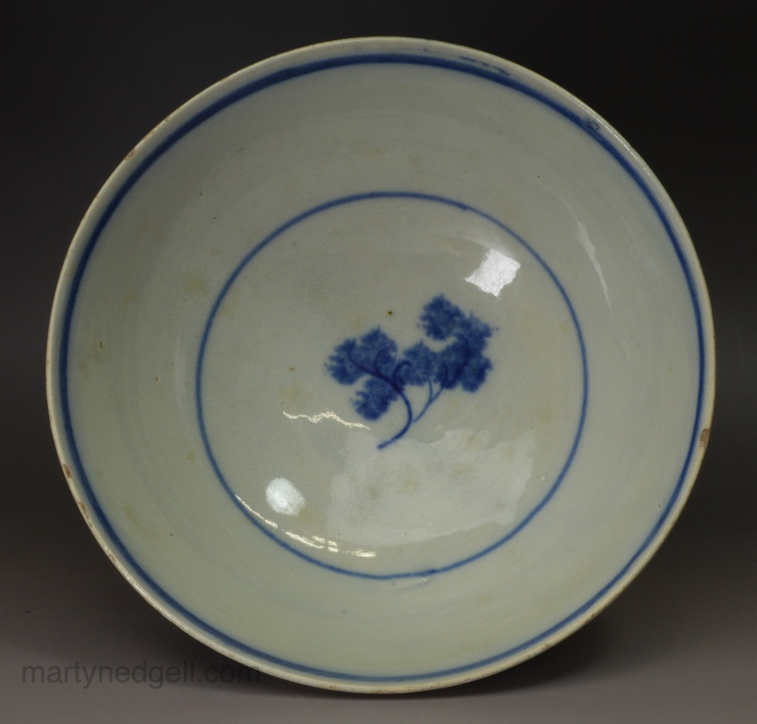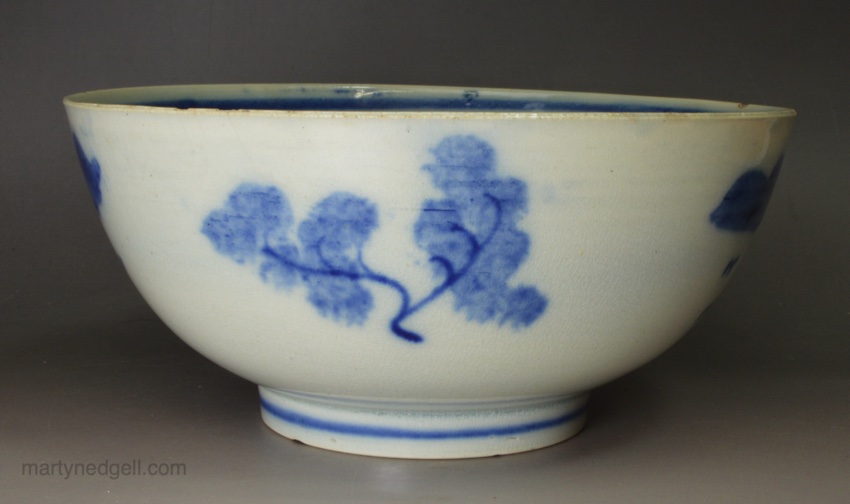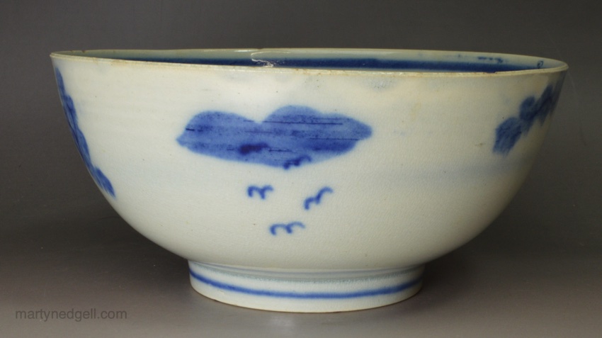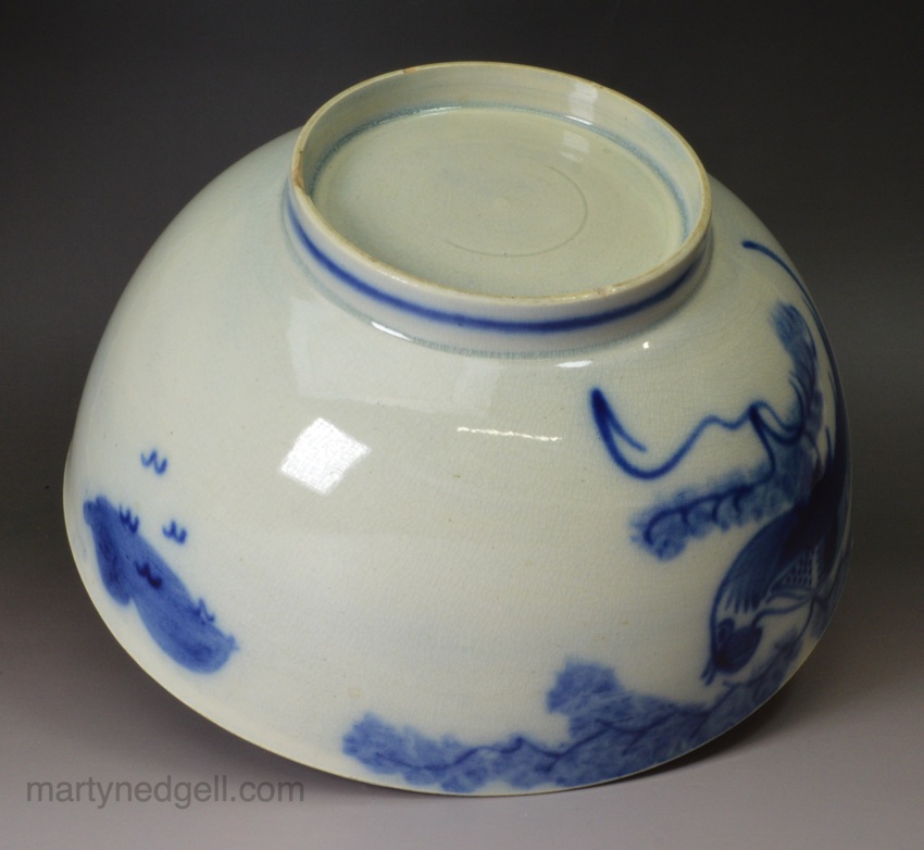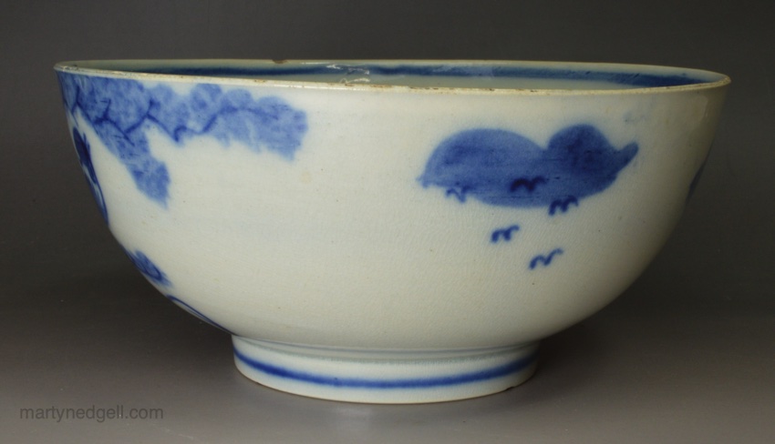 / Pearlware pottery bowl painted with a blue bird under the glaze, circa 1820