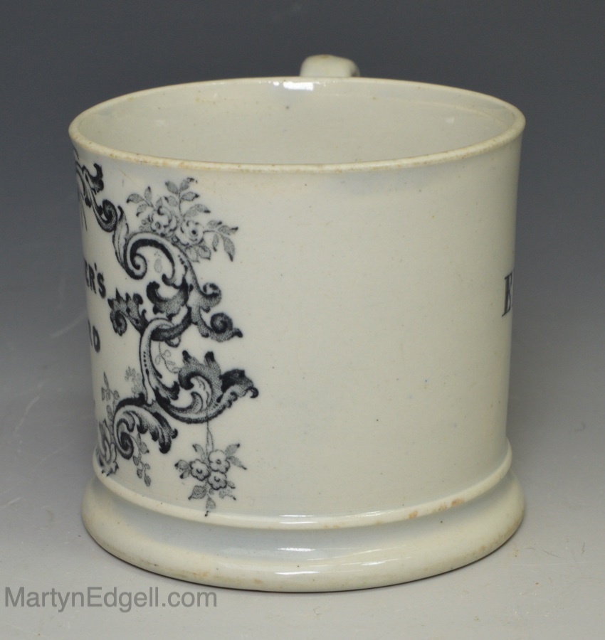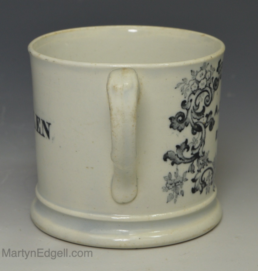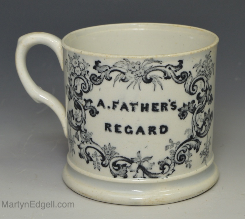 / Pearlware pottery child’s mug ‘A. FATHER’S REGARD, ELLEN’, circa 1830
