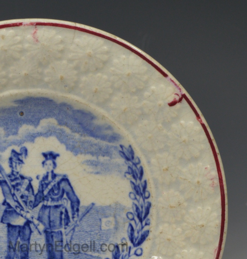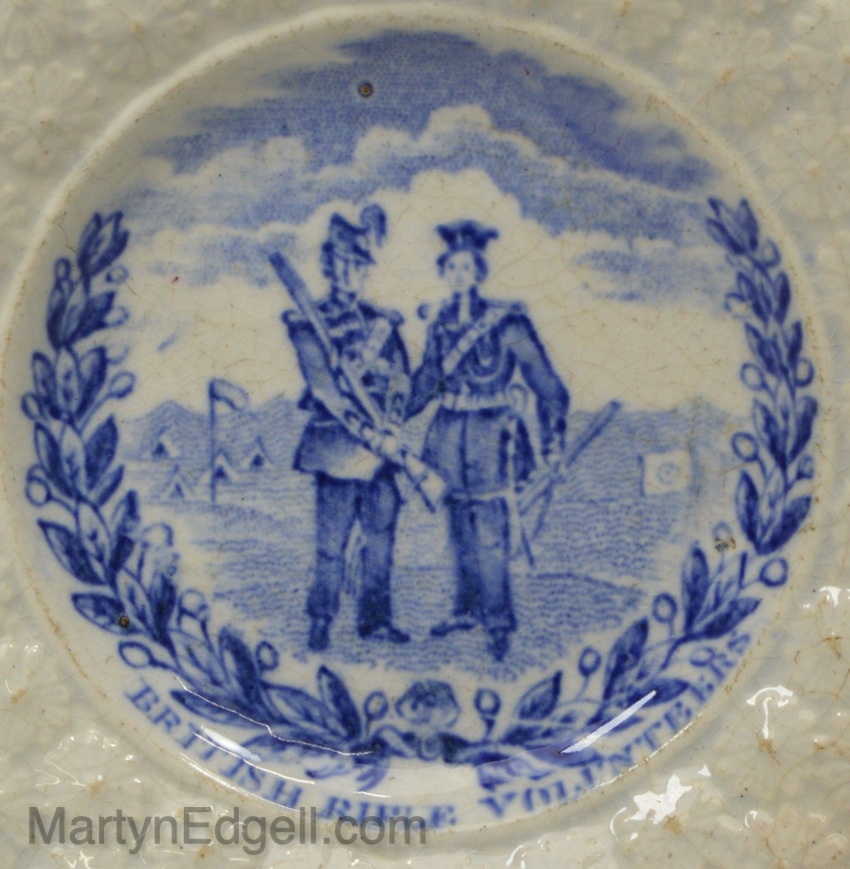 Pearlware pottery child’s plate ‘BRITISH RIFE VOLUNTEERS’, circa 1859
