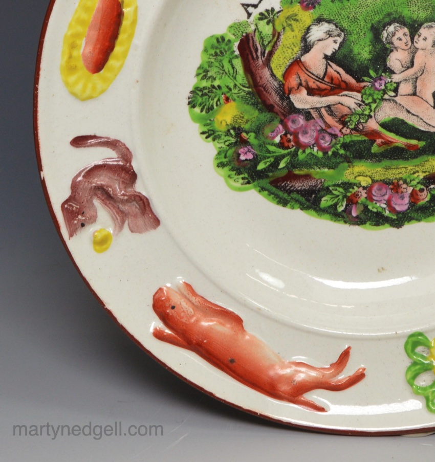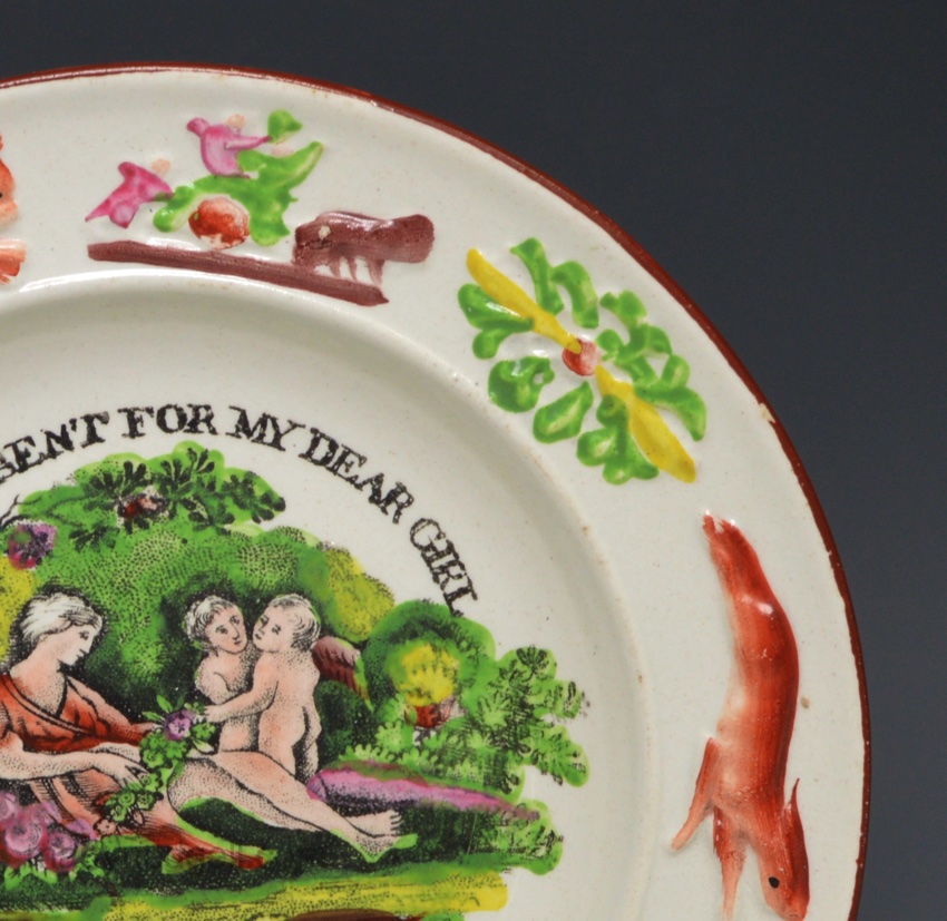Pearlware pottery child’s plate, circa 1820 ‘A PRESENT FOR MY DEAR GIRL’
