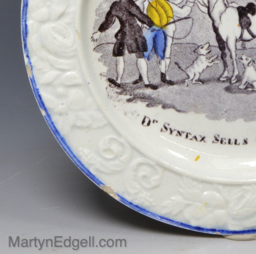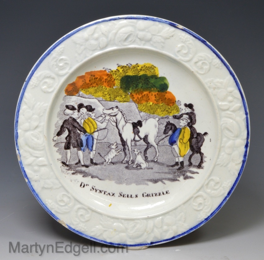 / Pearlware pottery child’s plate ‘Dr SYNTAX SELLS GRIZZLE’, circa 1820