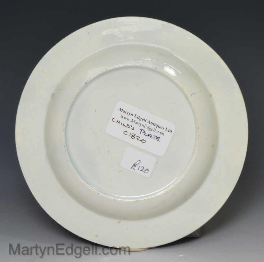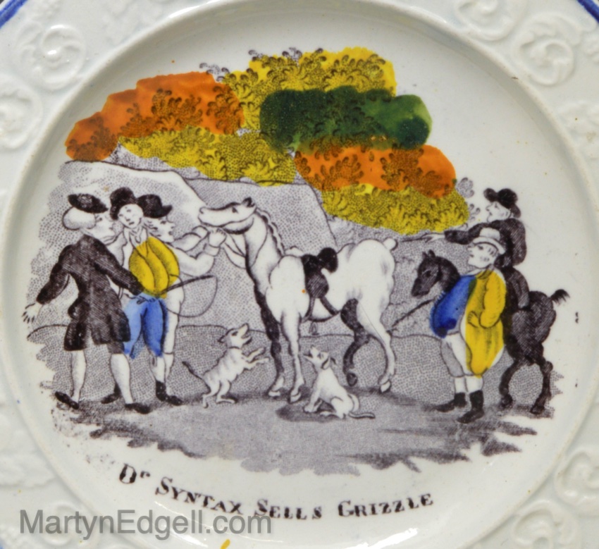Pearlware pottery child’s plate ‘Dr SYNTAX SELLS GRIZZLE’, circa 1820
