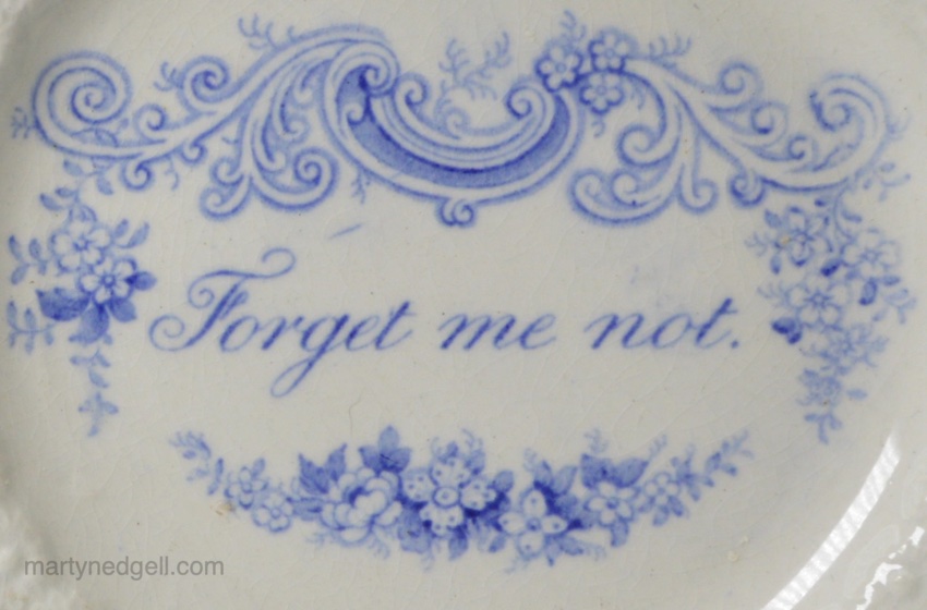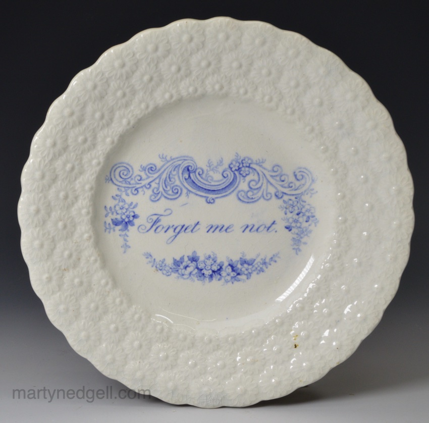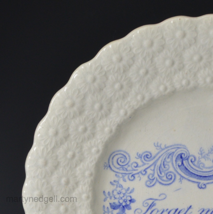 Pearlware pottery child’s plate ‘Forget me not’, circa 1840