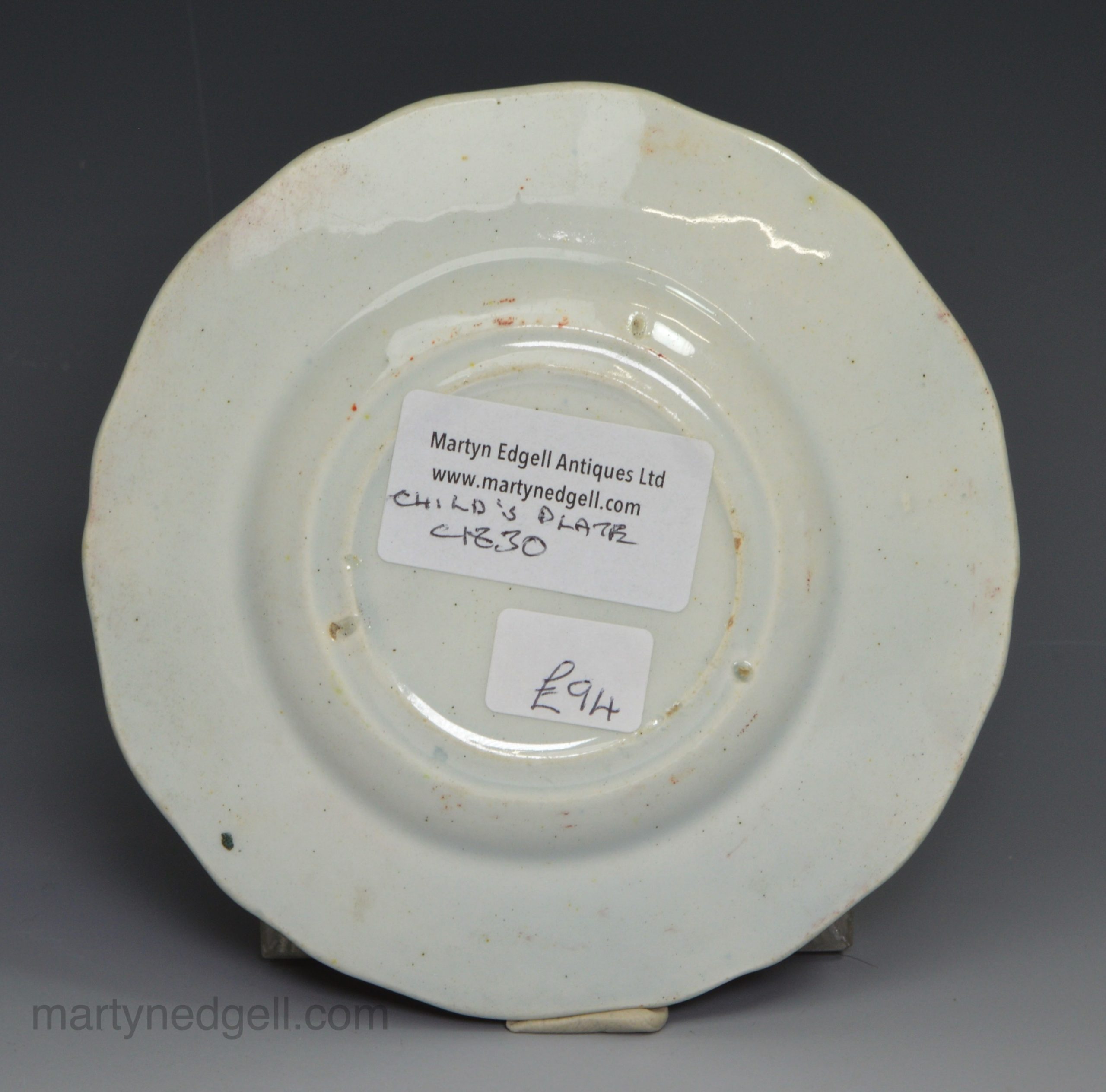 / Pearlware pottery child’s plate ‘PLAYING AT SHUTTLECOCK’, circa 1830