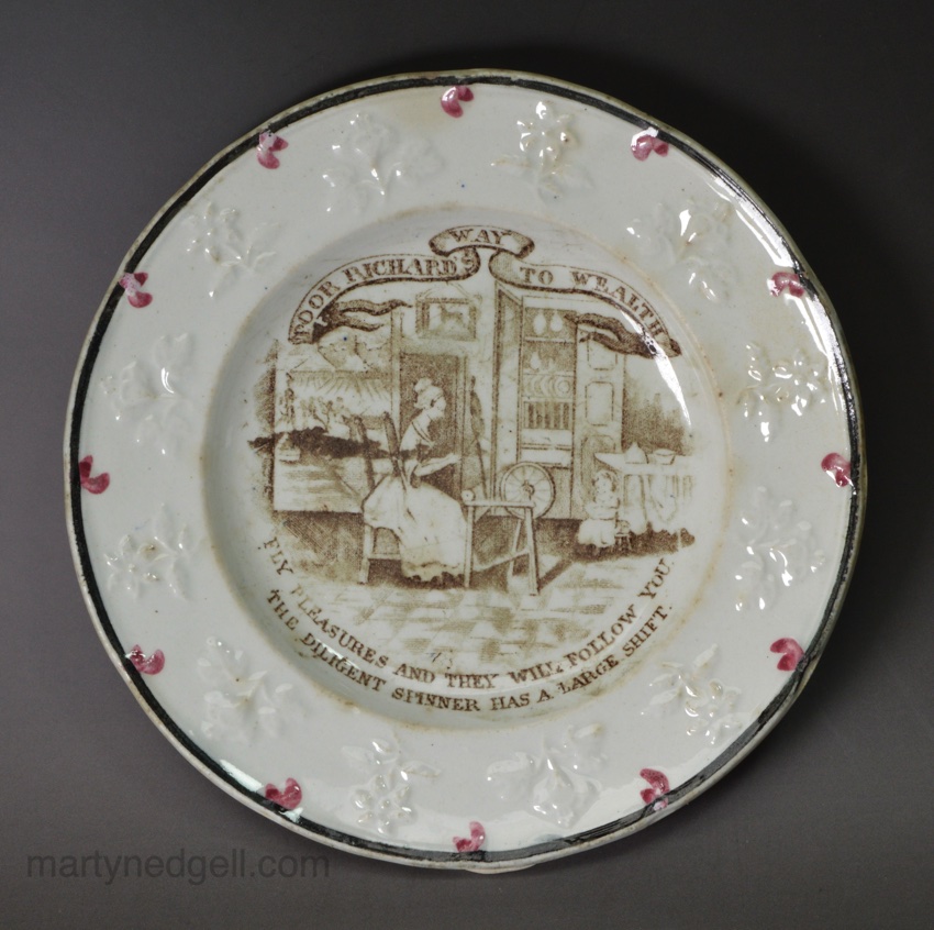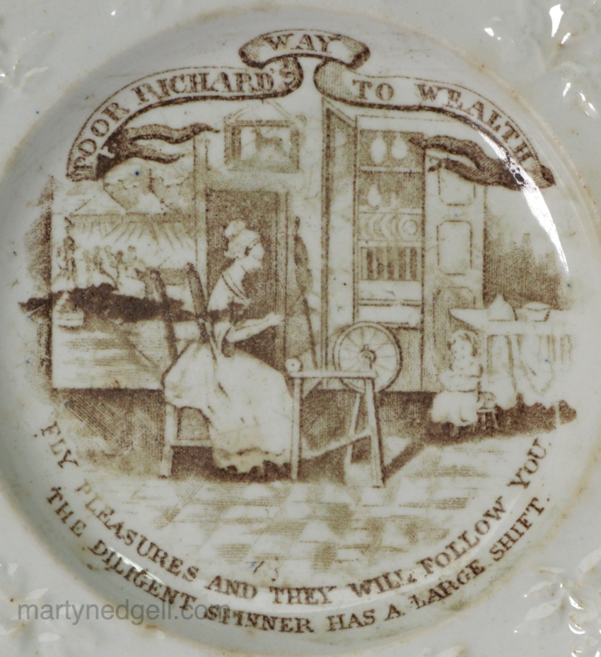 / Pearlware pottery child’s plate ‘POOR RICHARD’S WAY TO WEALTH’, circa 1840