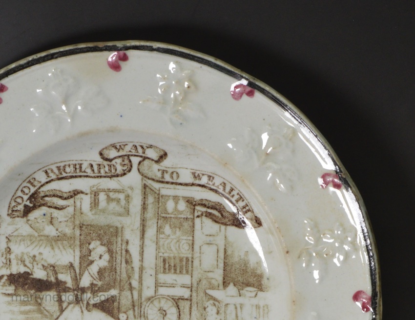 Pearlware pottery child’s plate ‘POOR RICHARD’S WAY TO WEALTH’, circa 1840