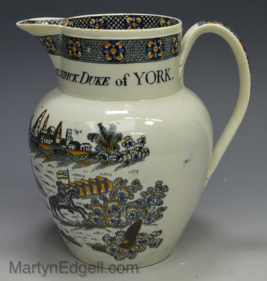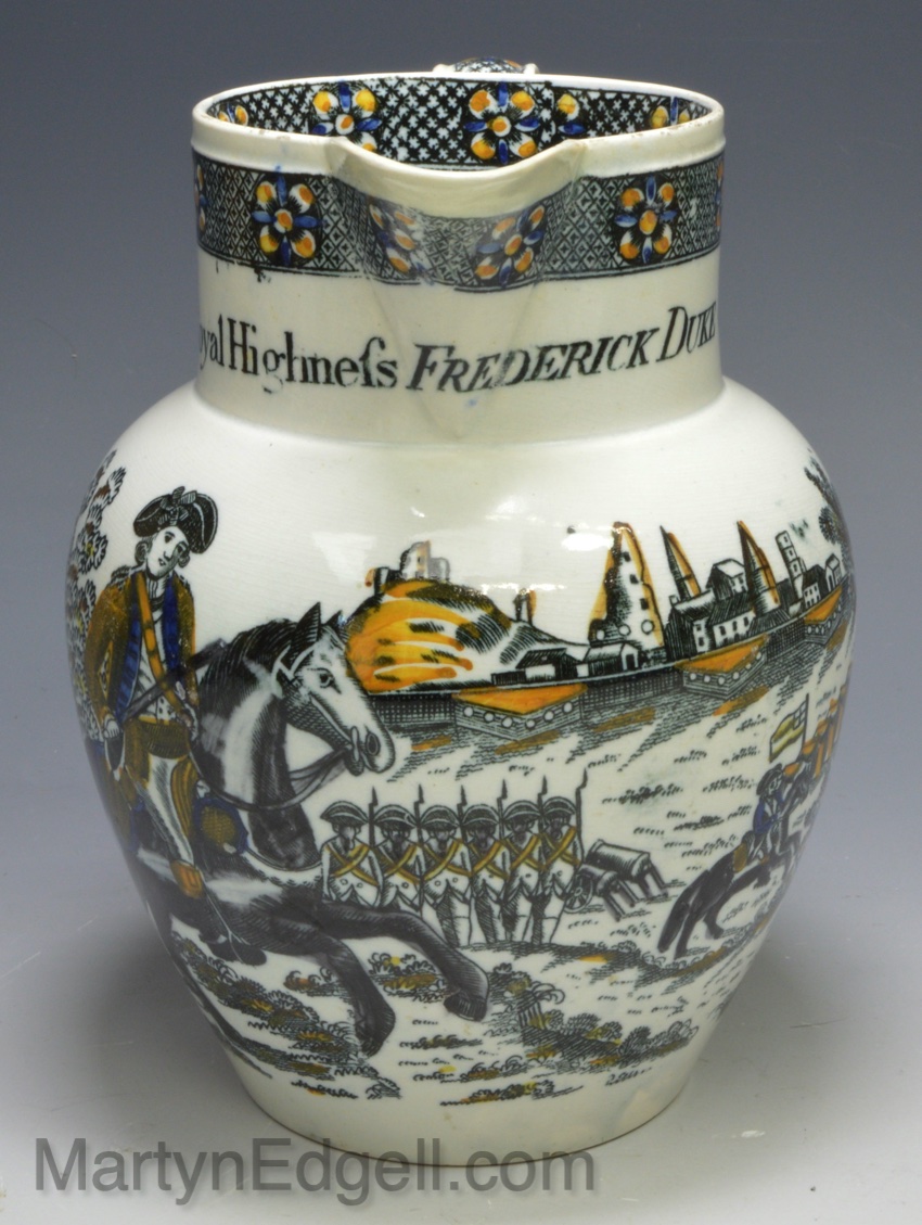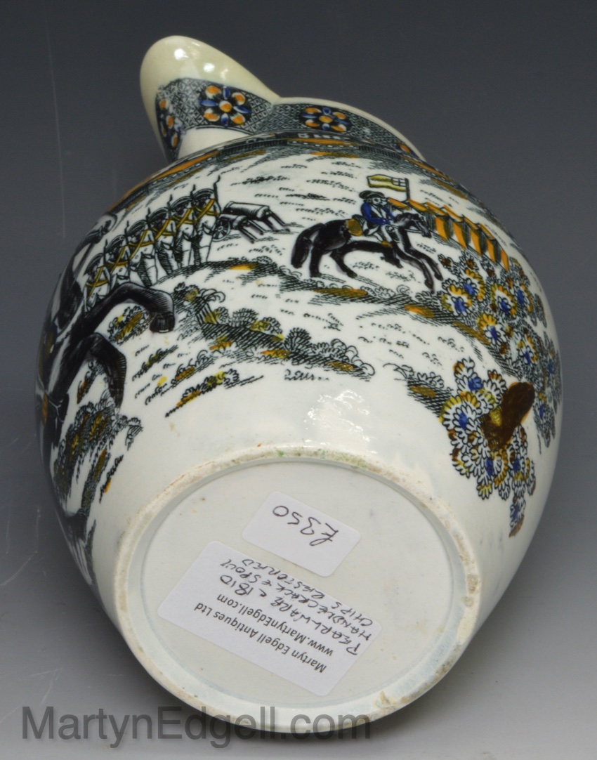 This type of black print with prattware colours is commonly known as Salopian ware.