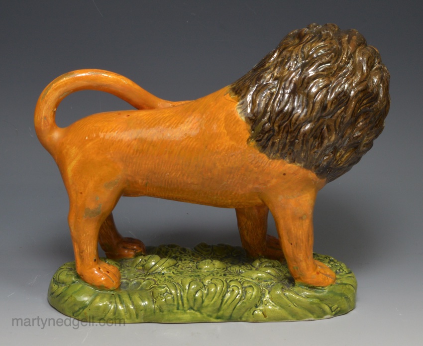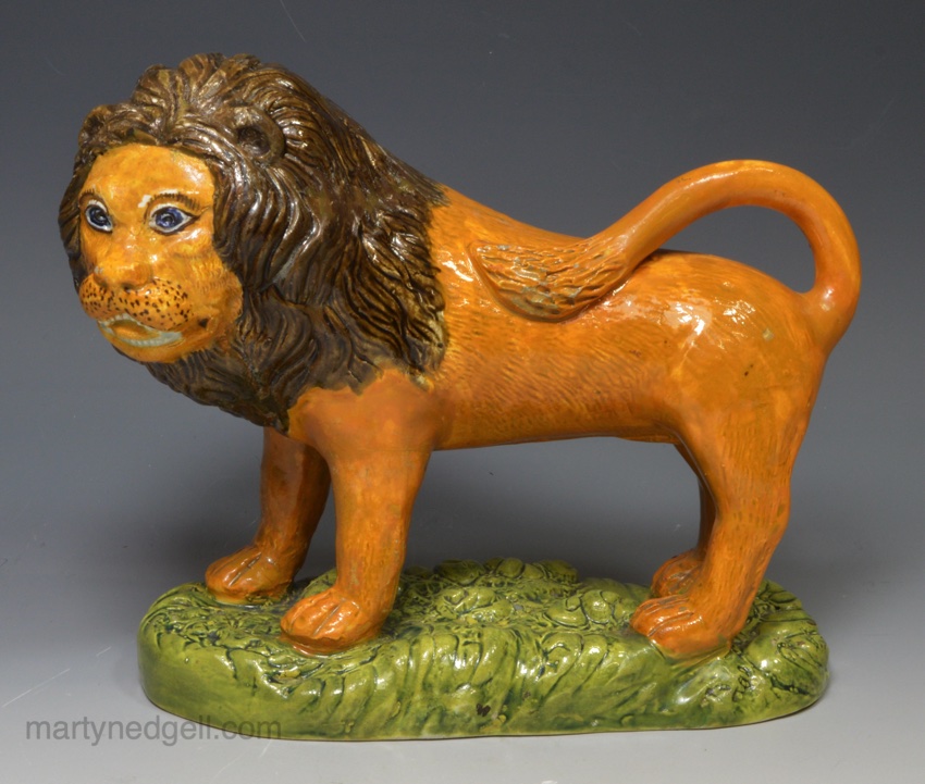 / Pearlware pottery figure of a lion decorated with colours under the glaze, circa 1810