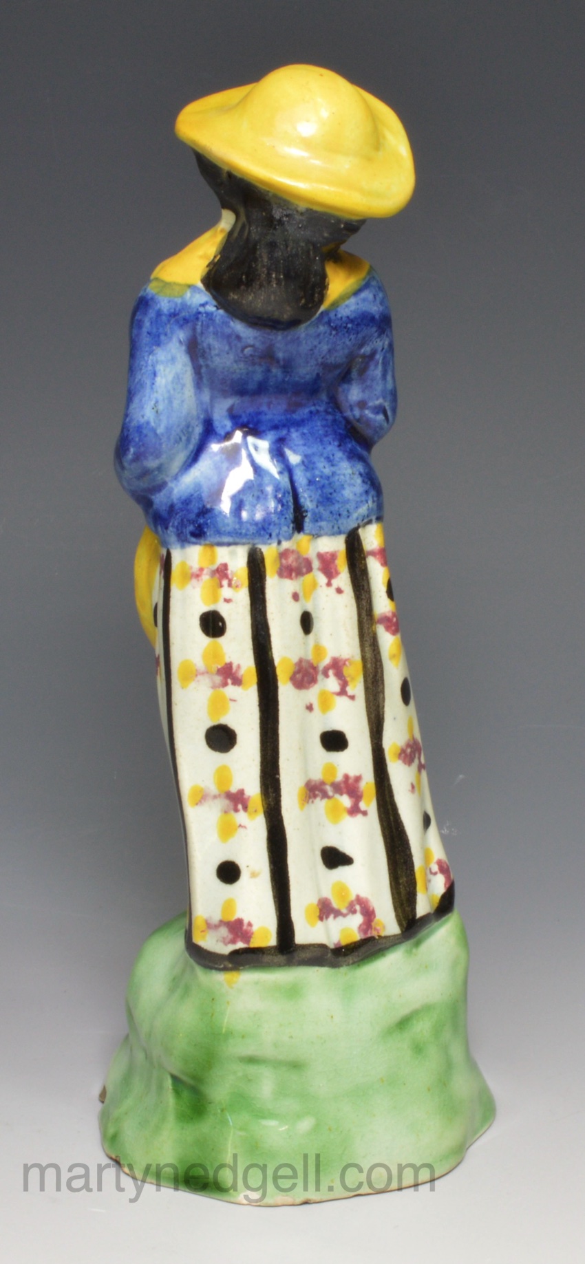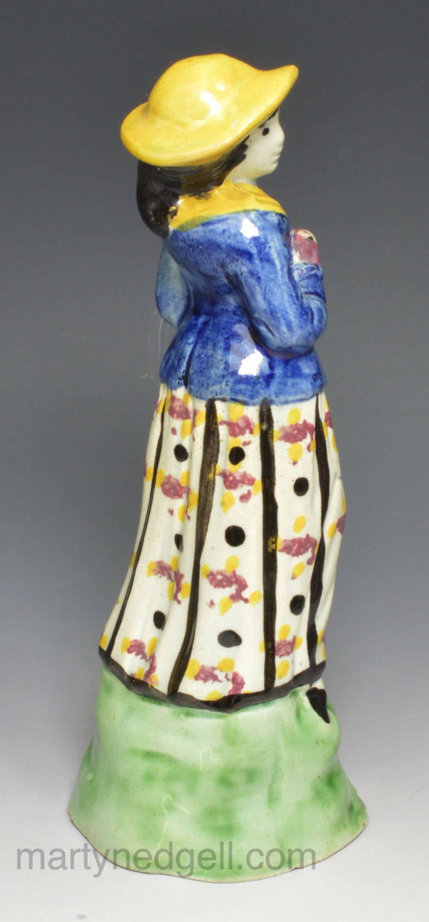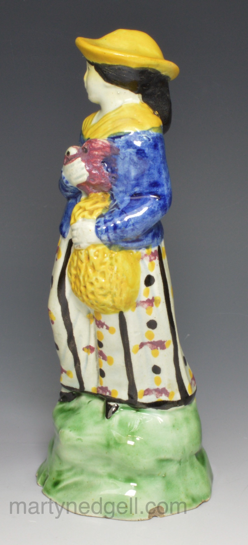 Pearlware pottery figure of a woman and a bird, circa 1800