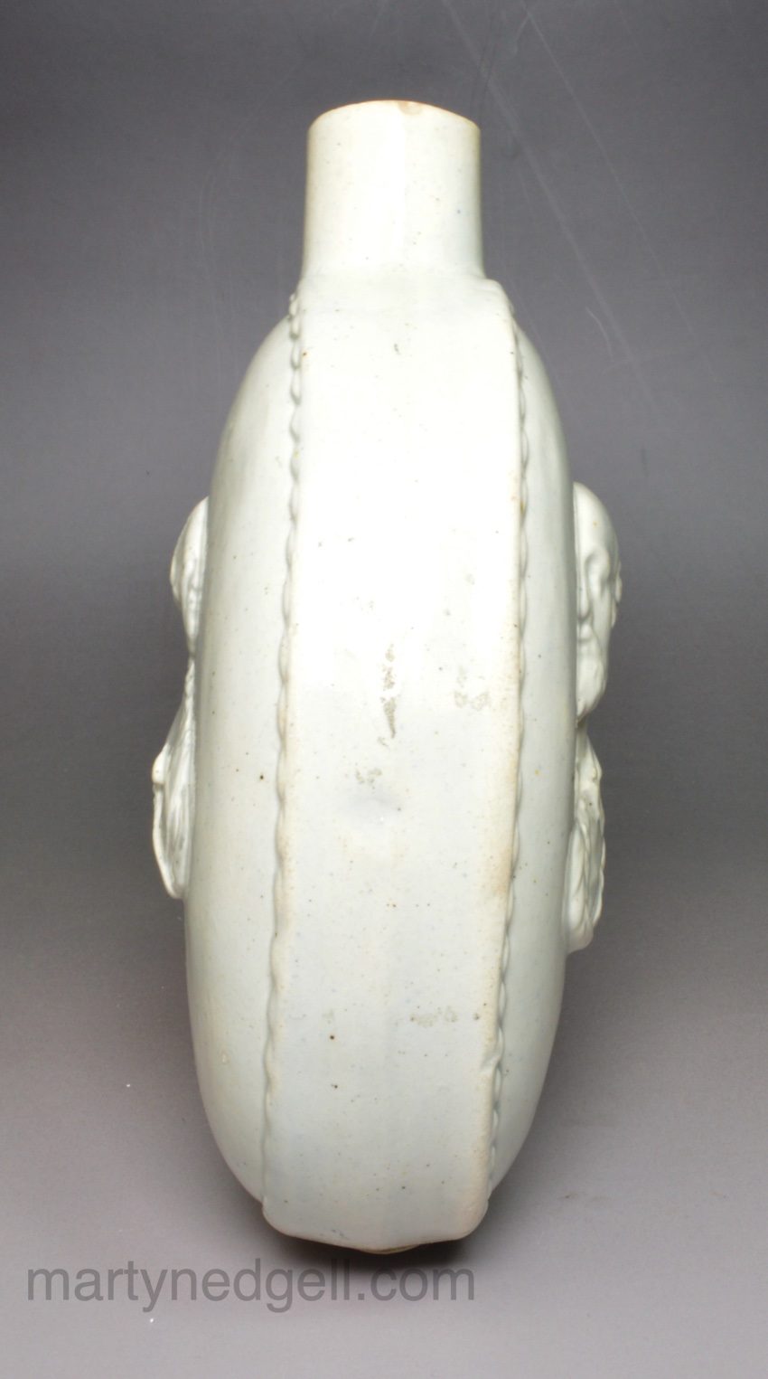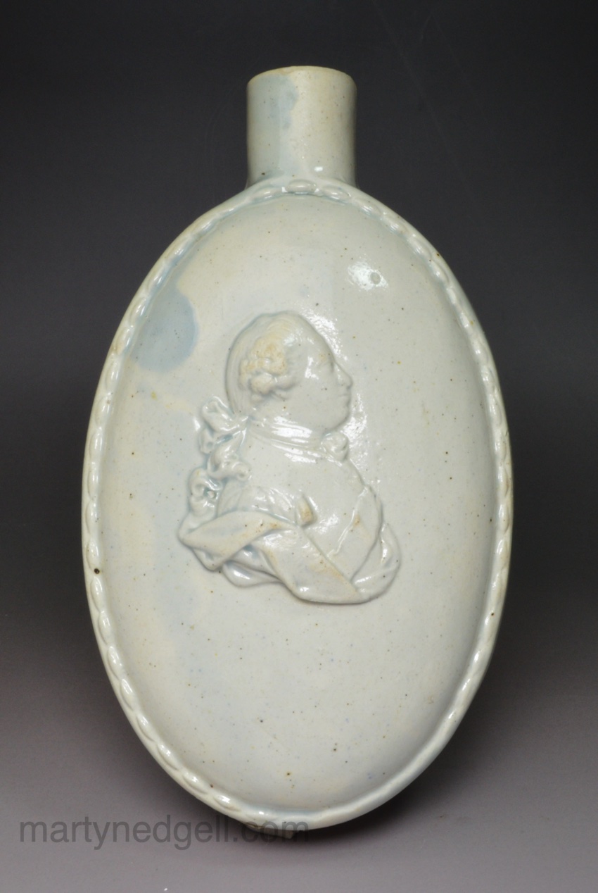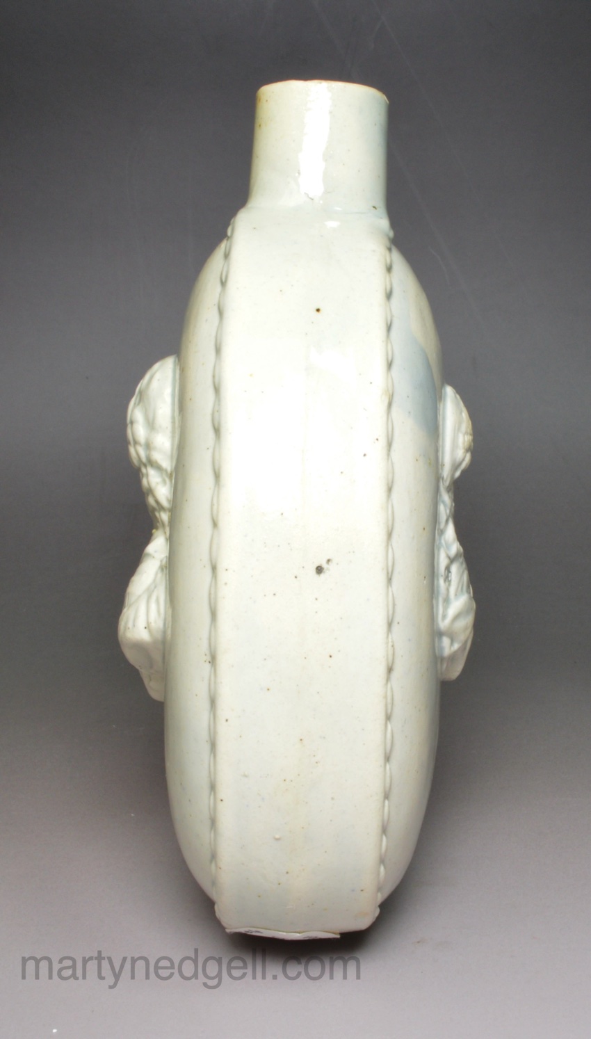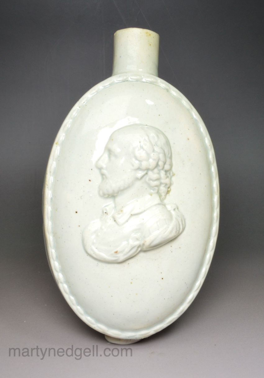 Pearlware pottery flask moulded with King George III and Shakespeare, circa 1790