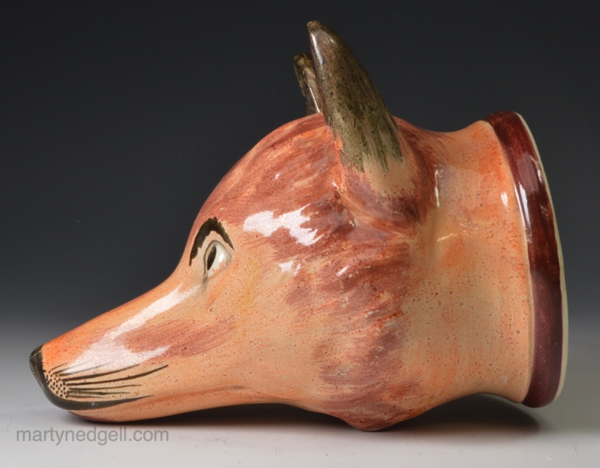 / Pearlware pottery fox head stirrup cup, circa 1820