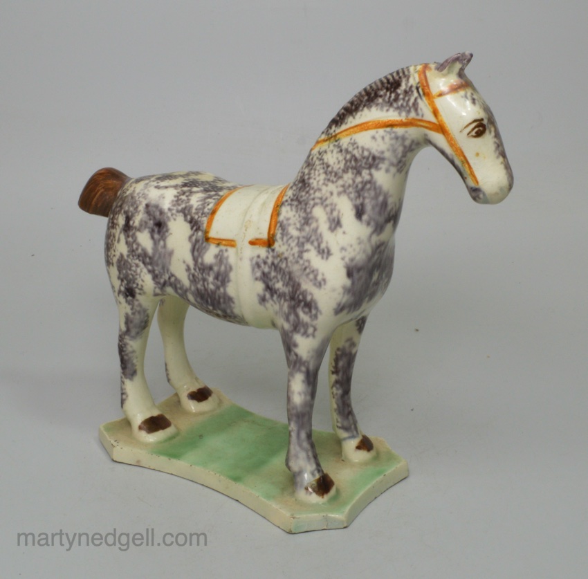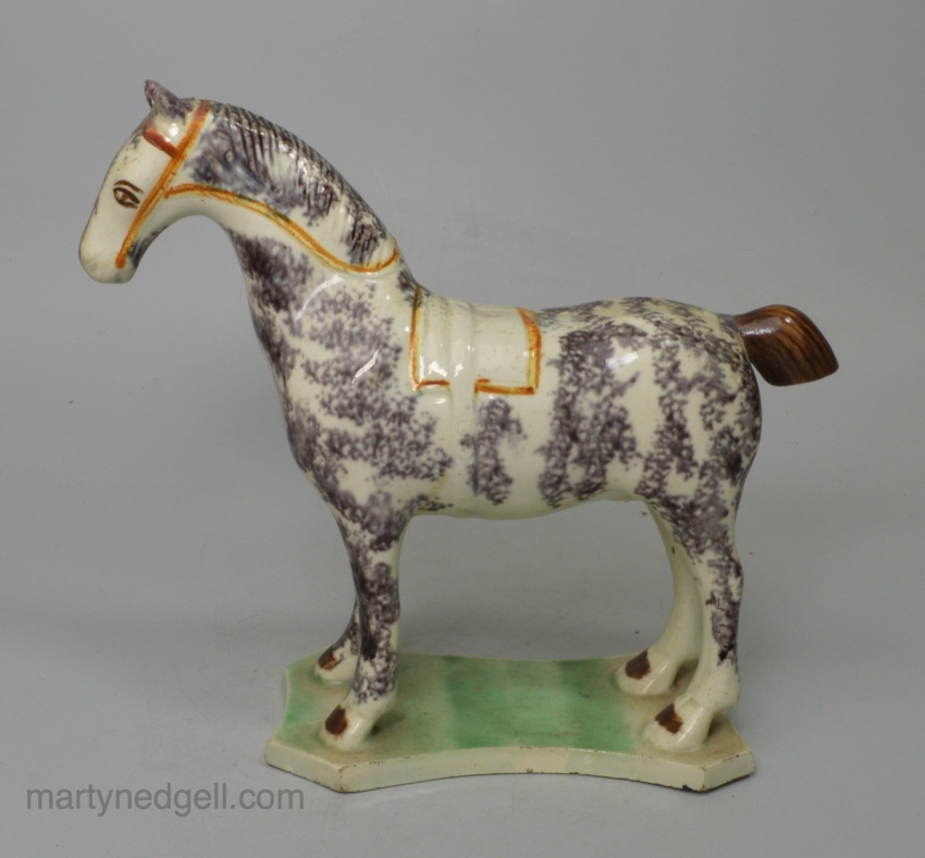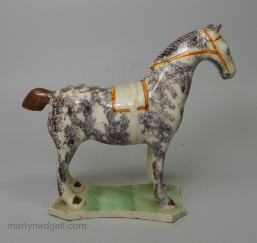 / Pearlware pottery horse decorated with colours under the glaze, circa 1820