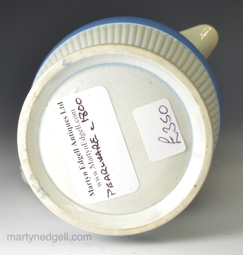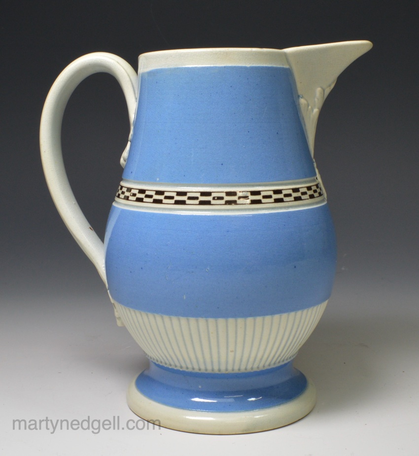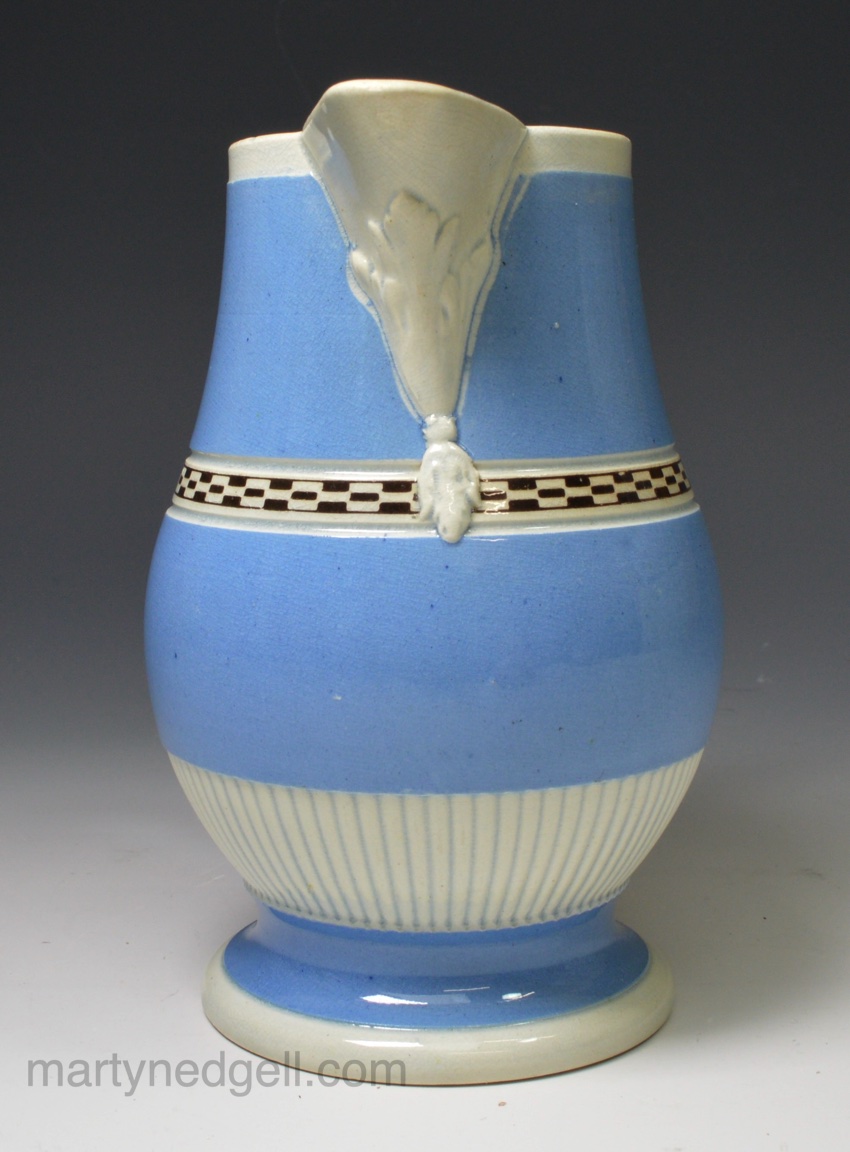 / Pearlware pottery jug decorated with blue slip and brown inlay checker, circa 1800
