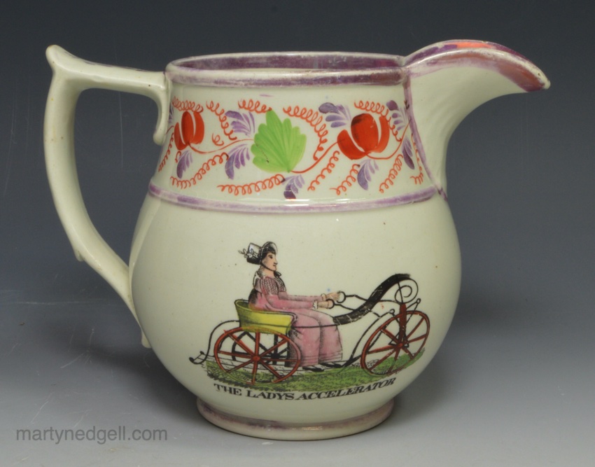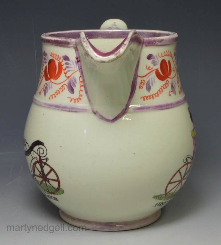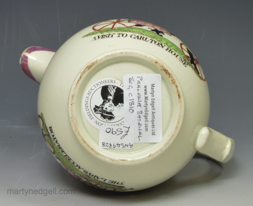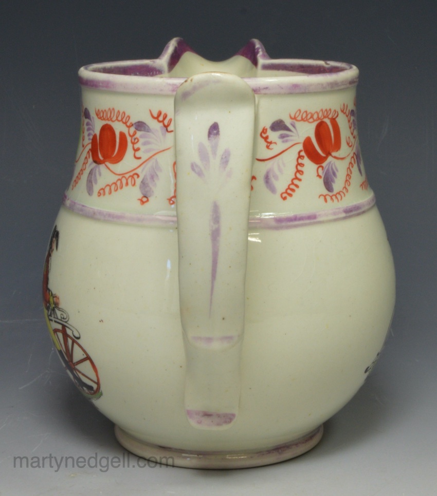 Pearlware pottery jug decorated with Prince Regent and Lady hertford ‘A VISIT TO CARLTON HOUSE’, circa 1810