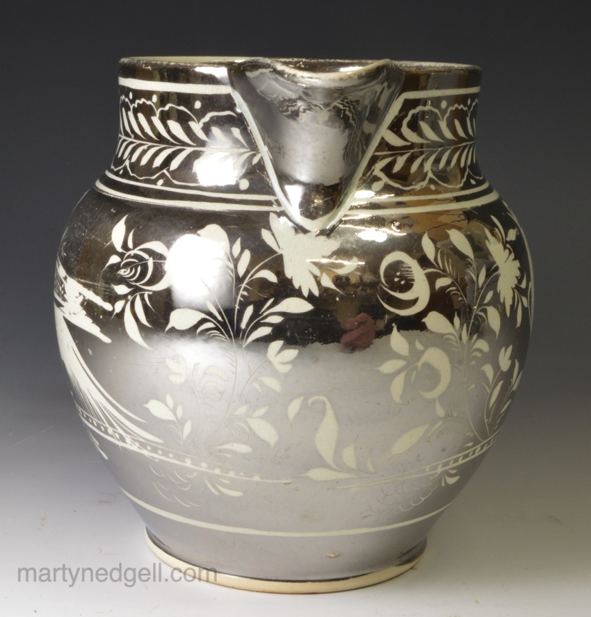 / Pearlware pottery jug decorated with silver resist lustre, circa 1820