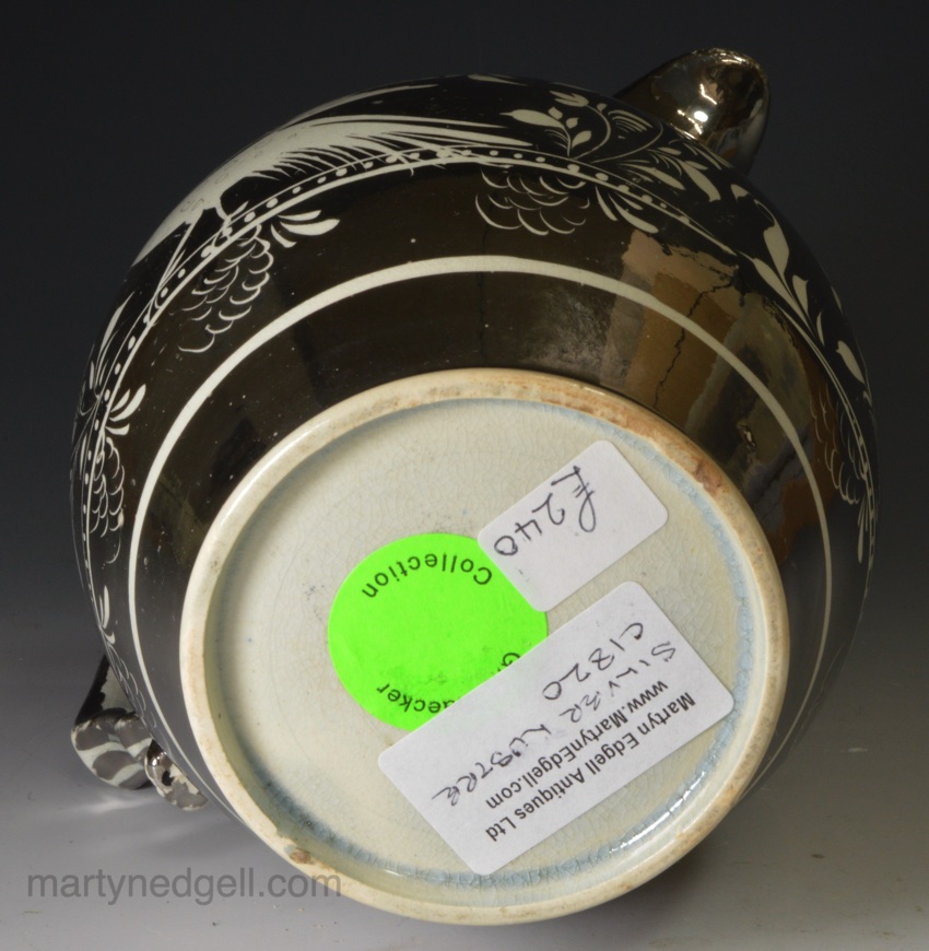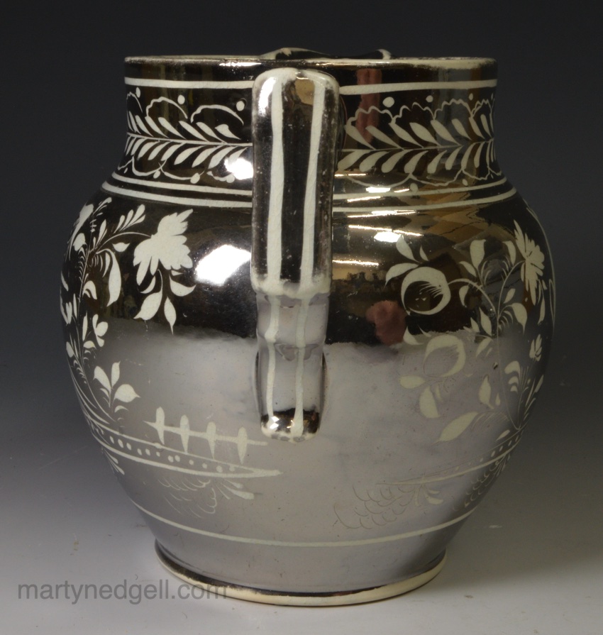 Pearlware pottery jug decorated with silver resist lustre, circa 1820
