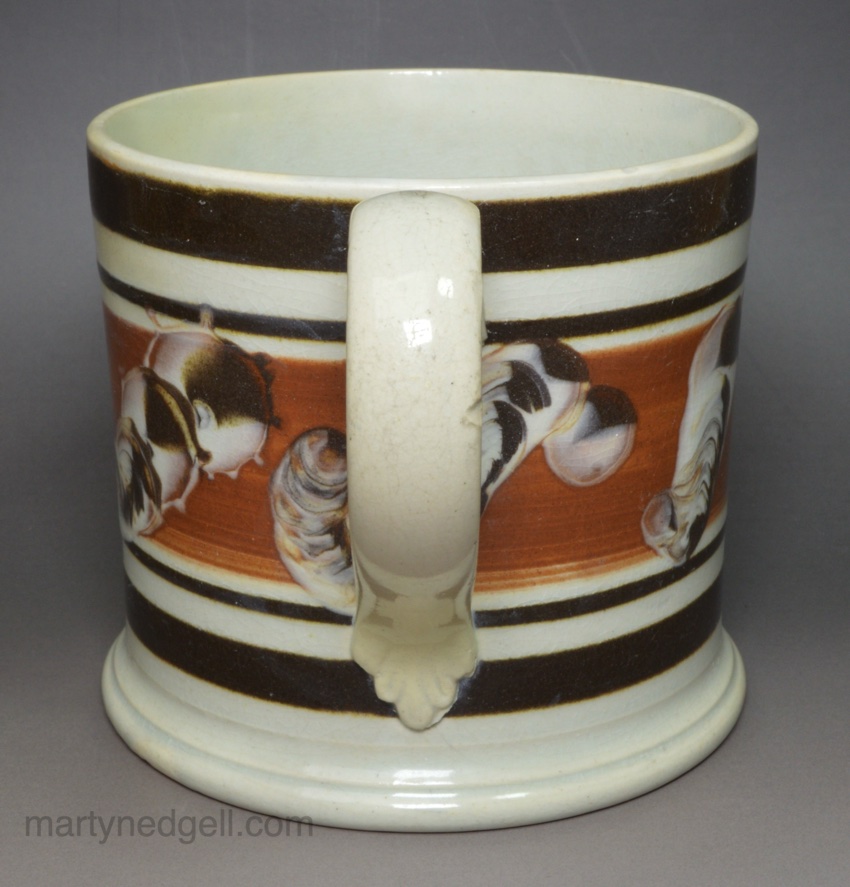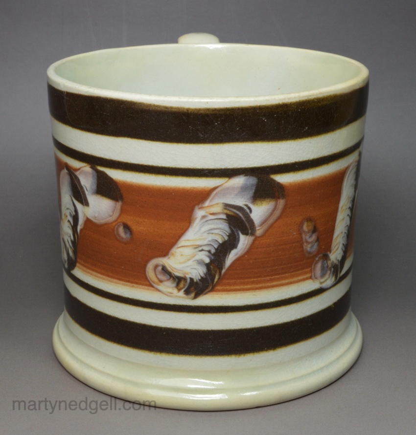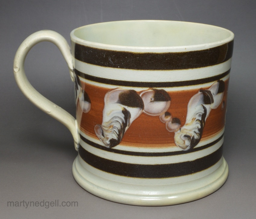 / Pearlware pottery mug decorated in brown slip, circa 1830