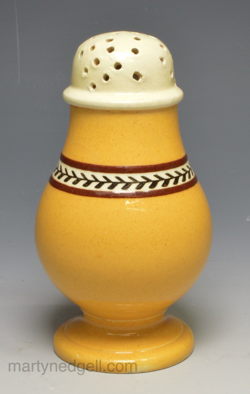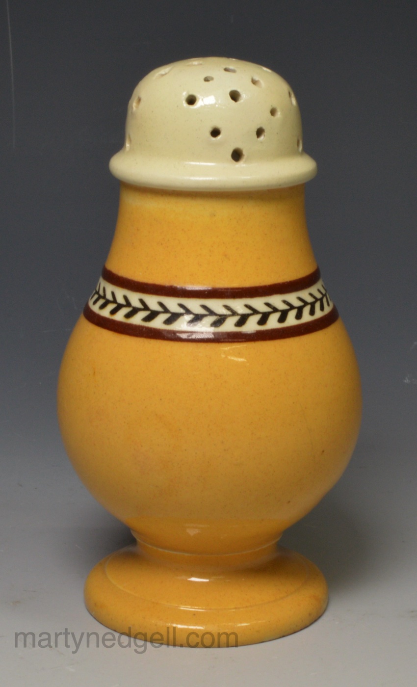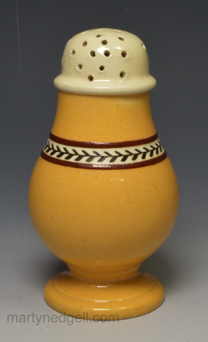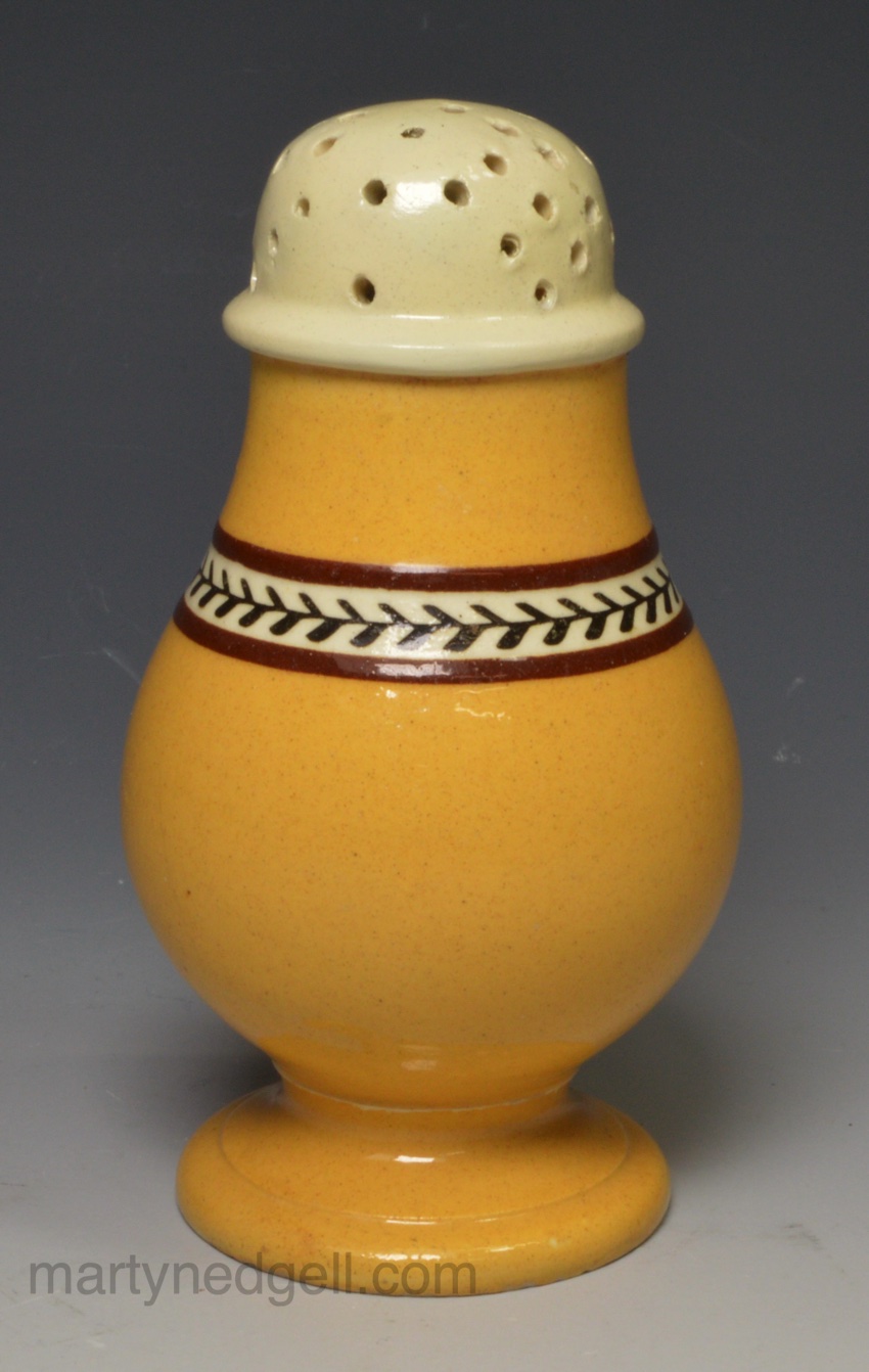 Pearlware pottery paper pot decorated with pumpkin slip, circa 1820