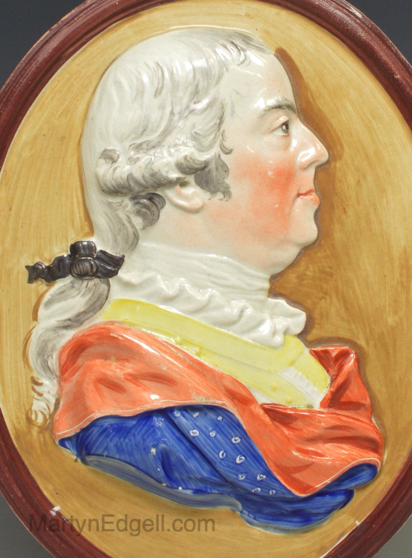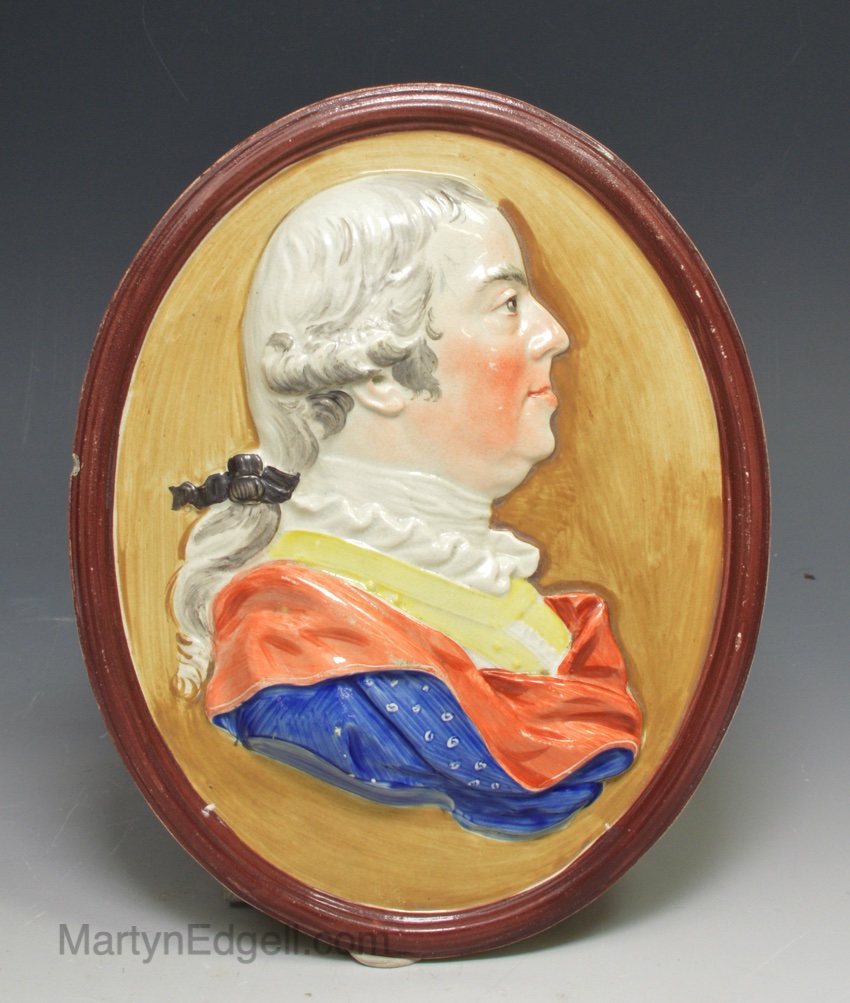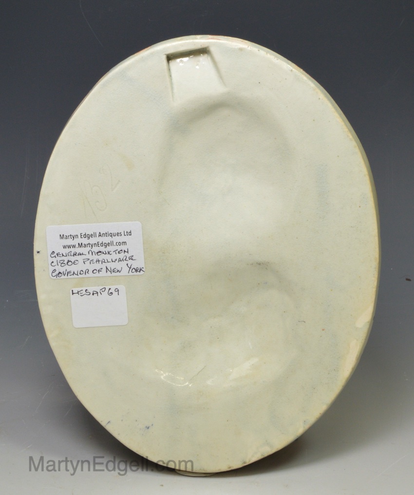 Pearlware pottery plaque moulded with General Monkton ex governor of New York, circa 1800