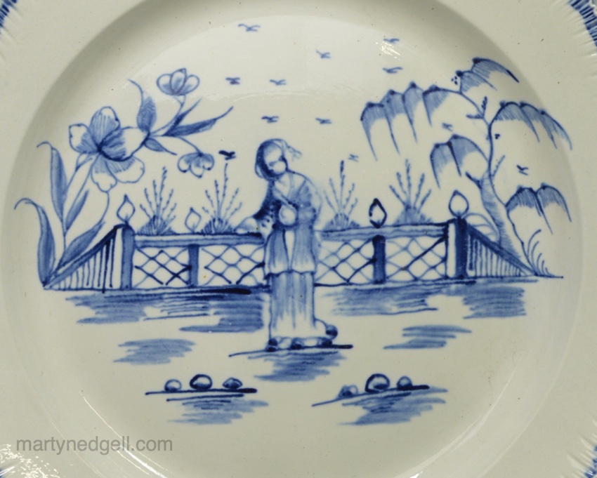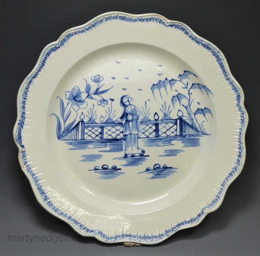 / Pearlware pottery plate decorated with blue shell edging, circa 1800