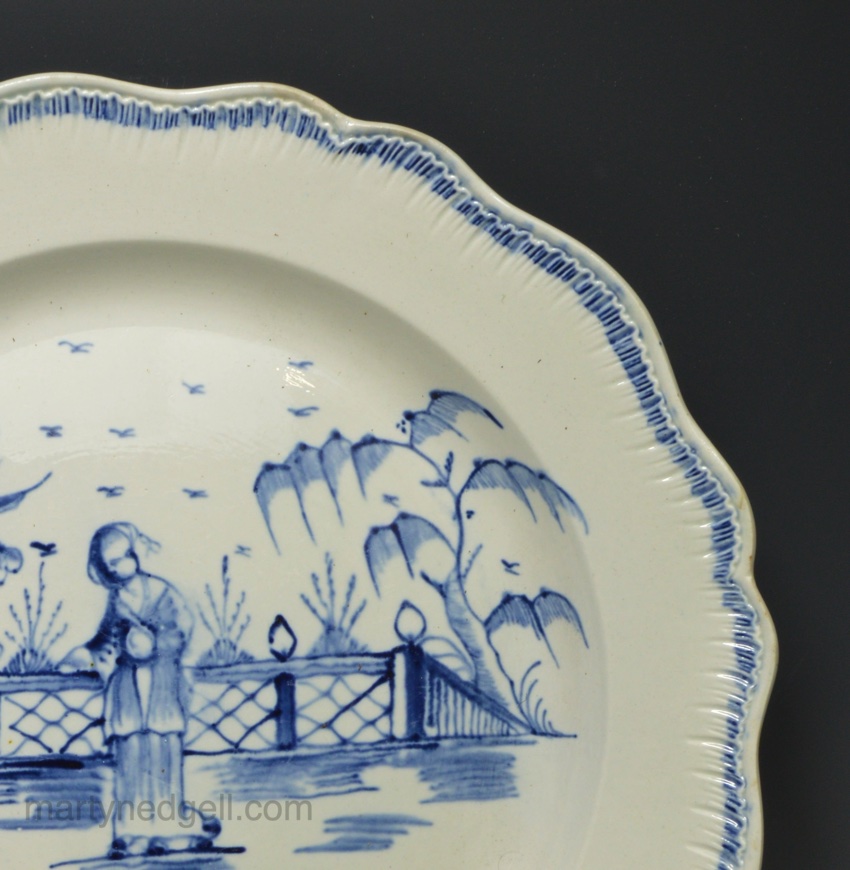 Pearlware pottery plate decorated with blue shell edging, circa 1800