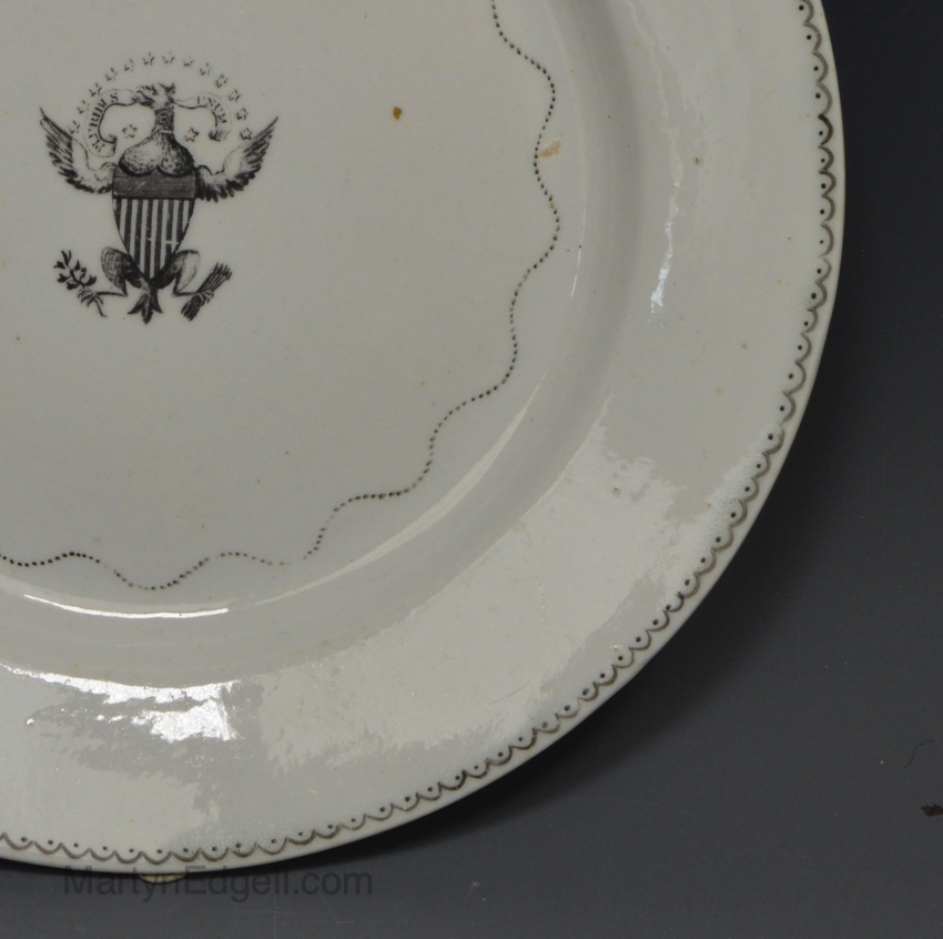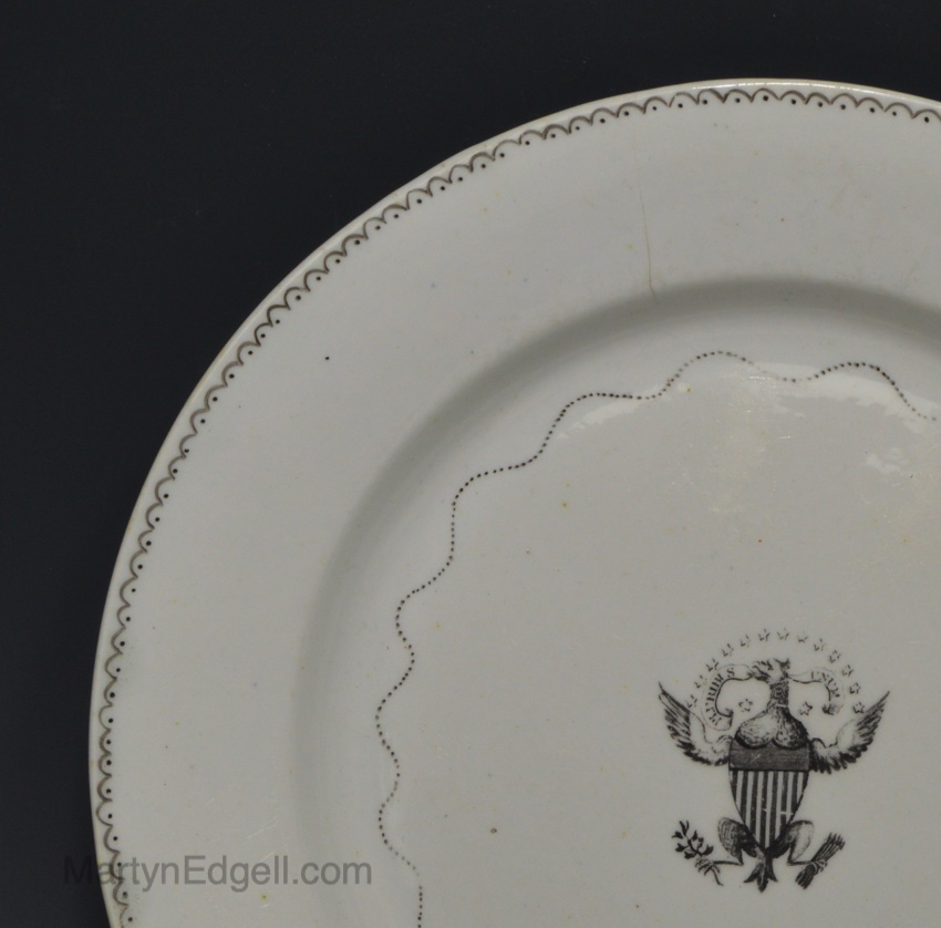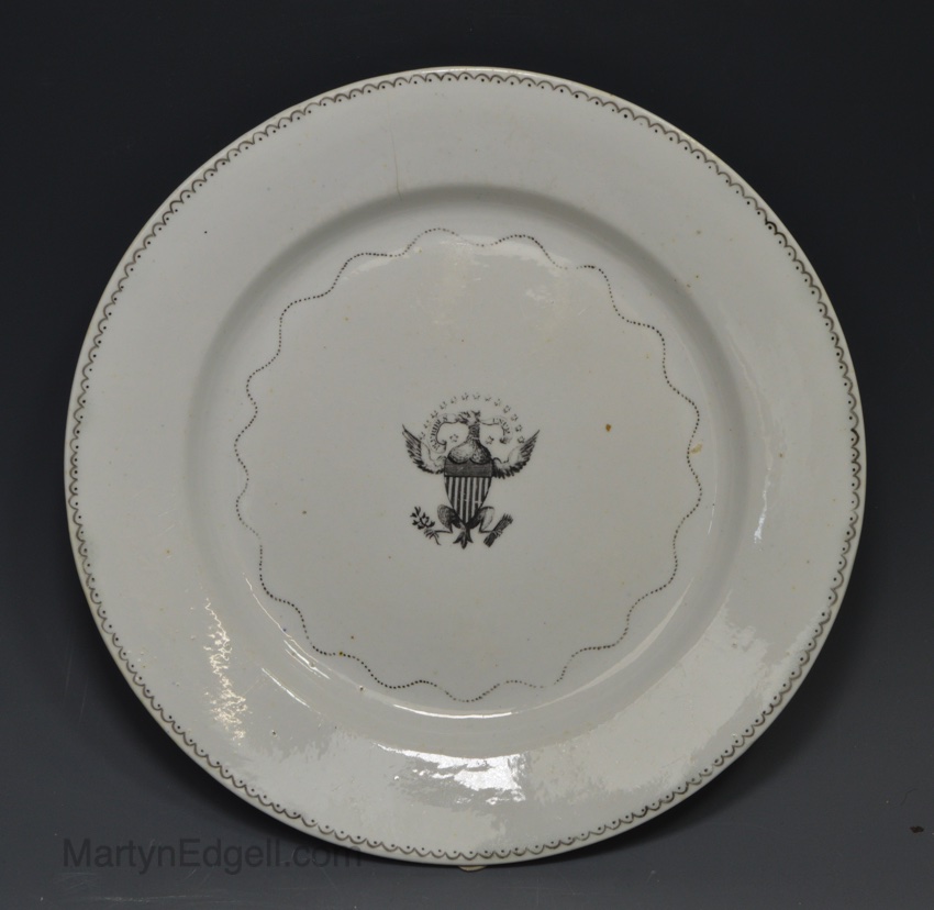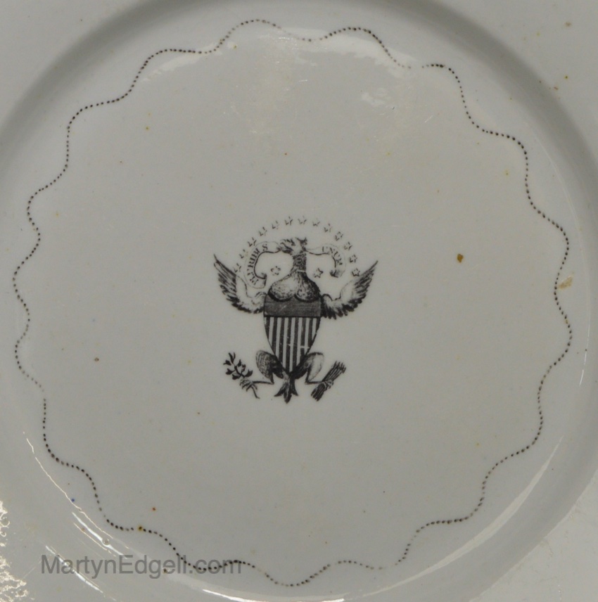Porcelain plate printed 1800 with American coat of arms, circa 1800, probably New Hall