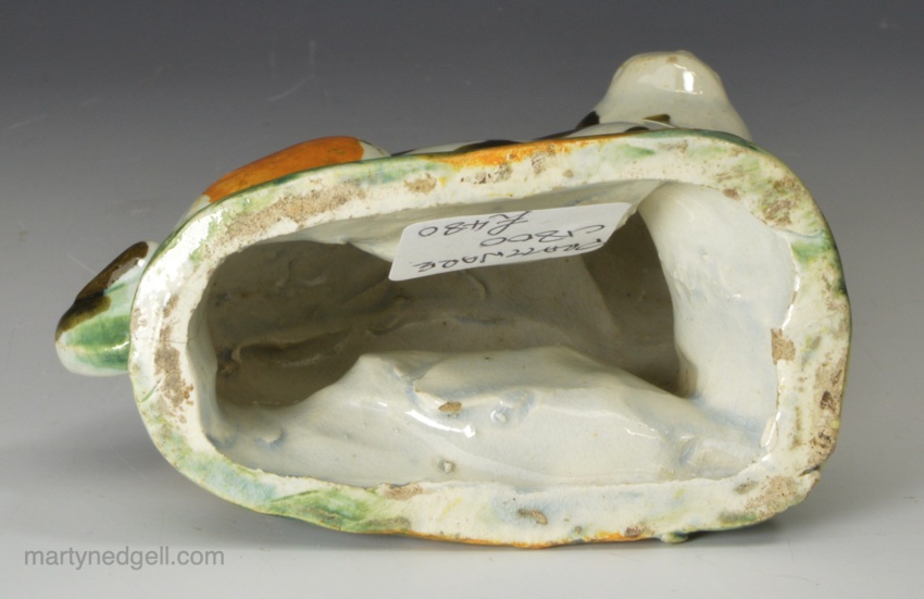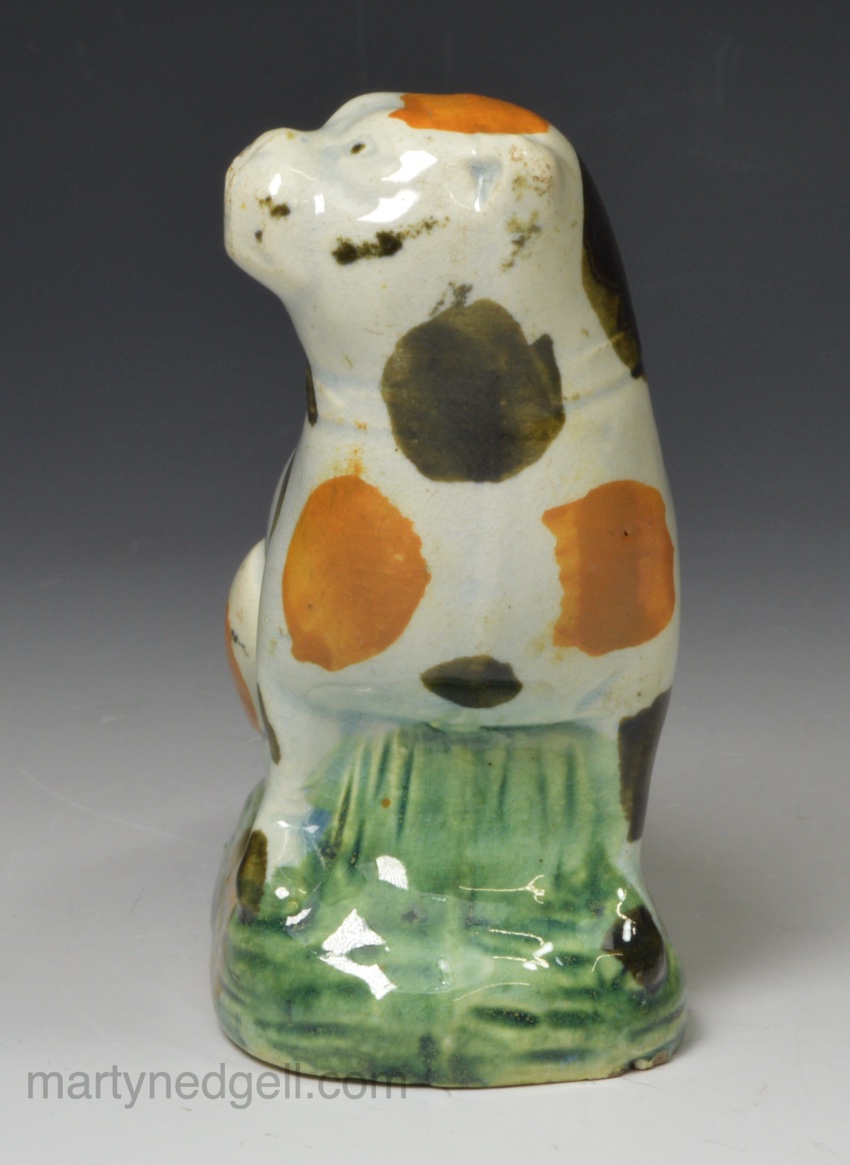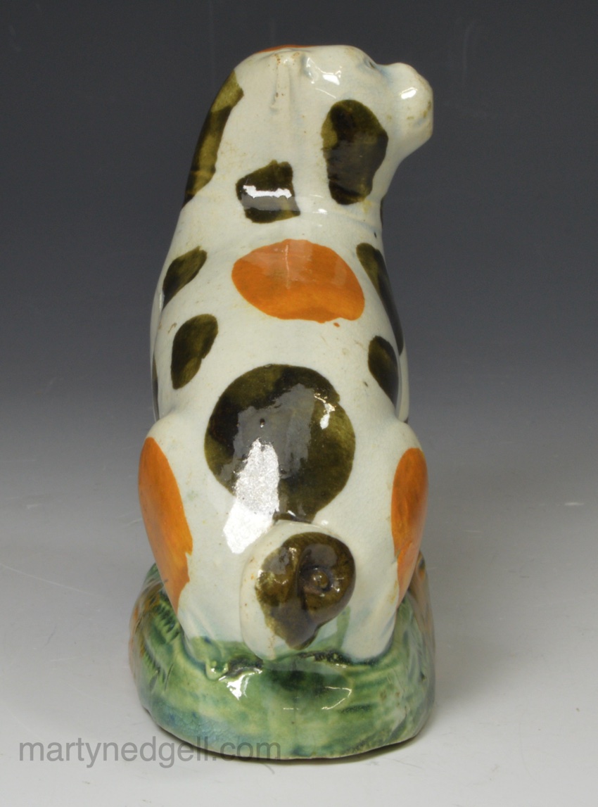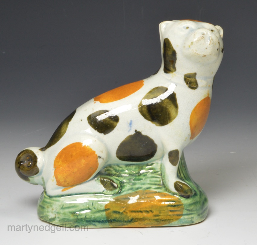 / Pearlware pottery pug decorated with Pratt colours under the glaze, circa 1800