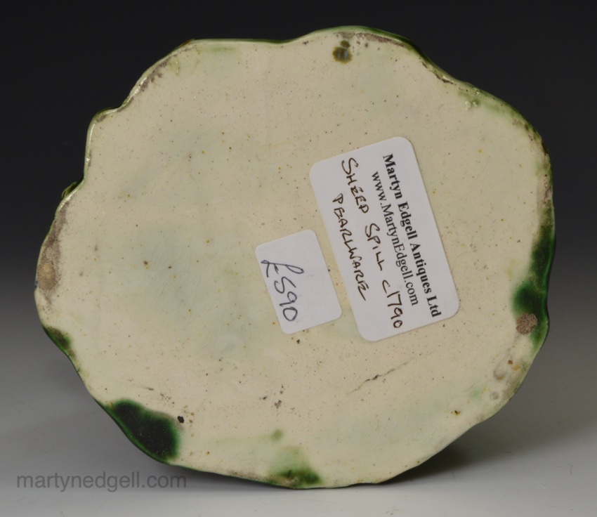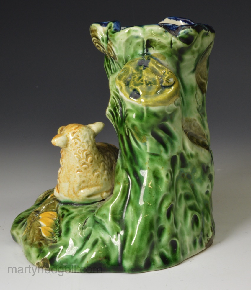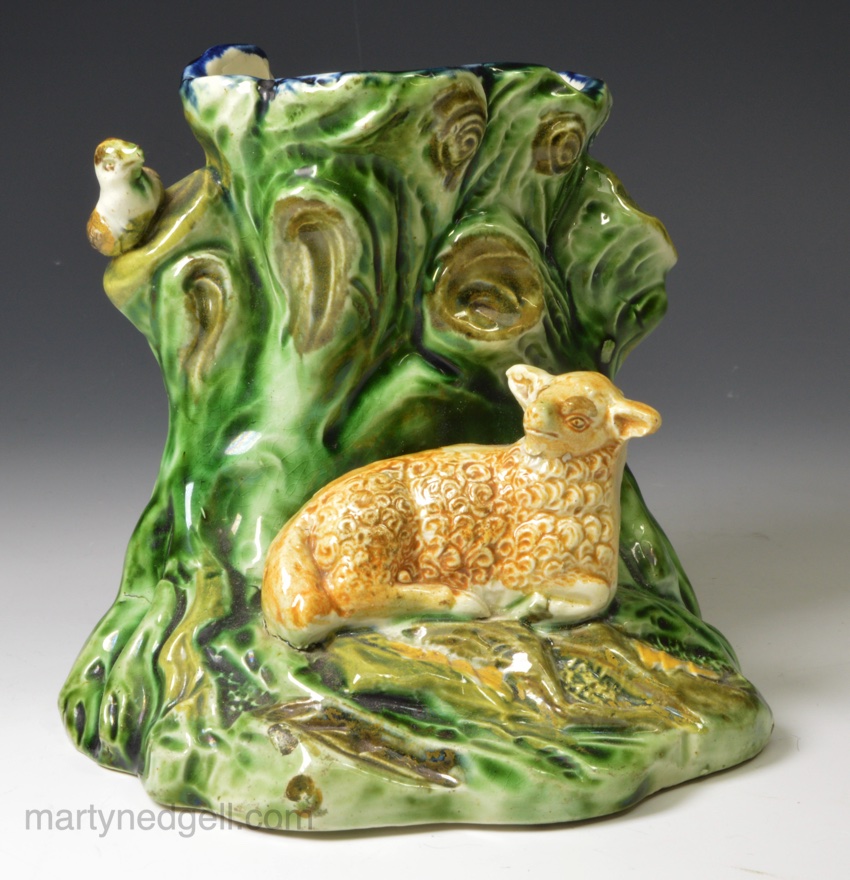 / Pearlware pottery sheep spill vase decorated with colours under the glaze, circa 1790