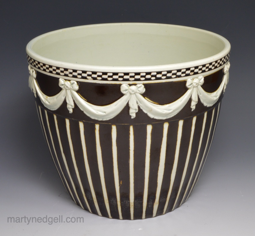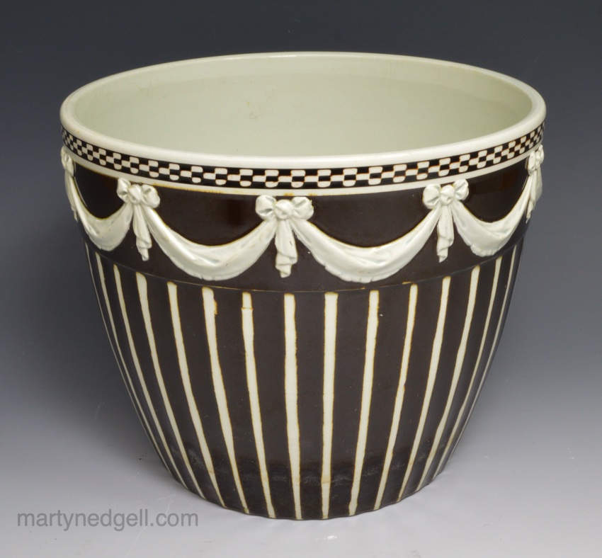 / Wedgwood pearlware pottery flower pot decorated with brown slip, circa 1790