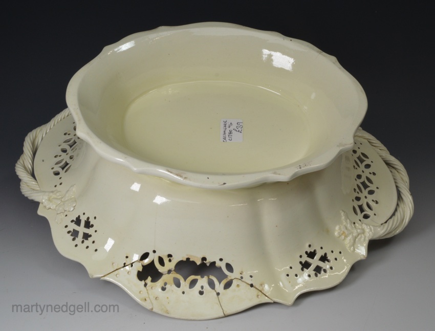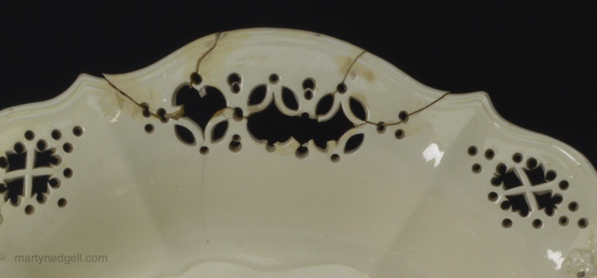 Condition: Two sections of the rim broken and restuck with a few pieces missing