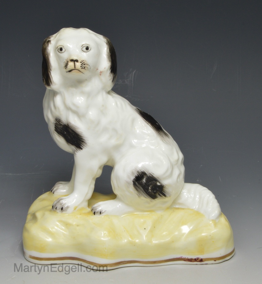 / Staffordshire porcelain figure of a spaniel, circa 1830 Alcock Pottery
