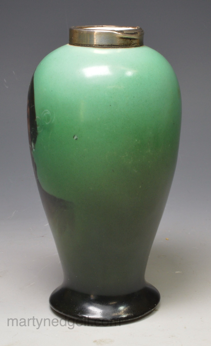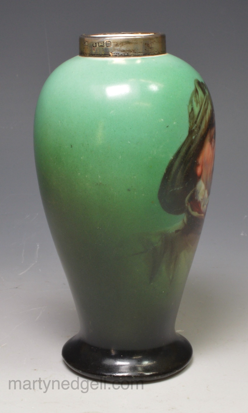 / Porcelain vase decorated in green with a print of a Cornish fisherman, circa 1911