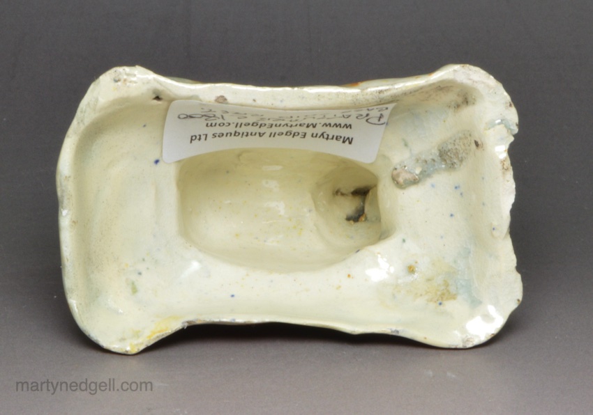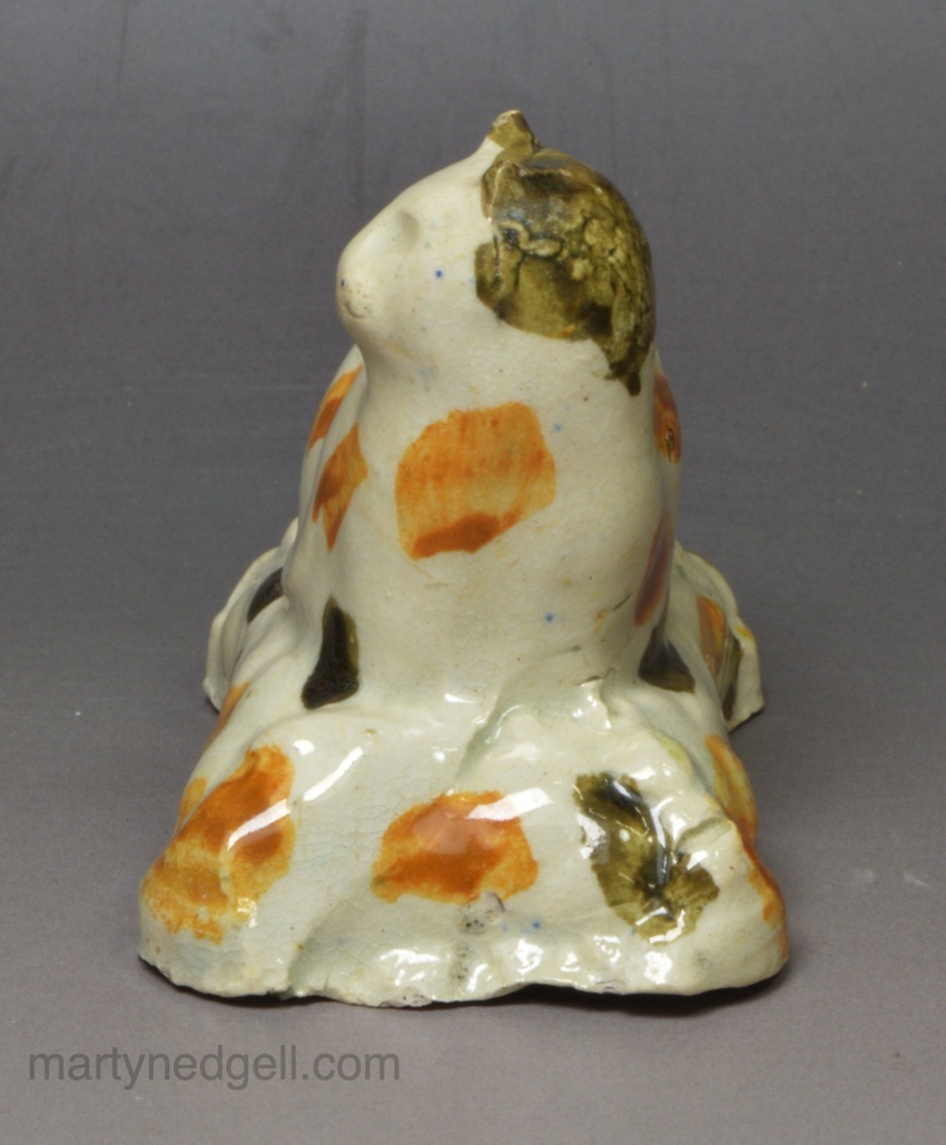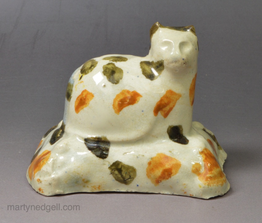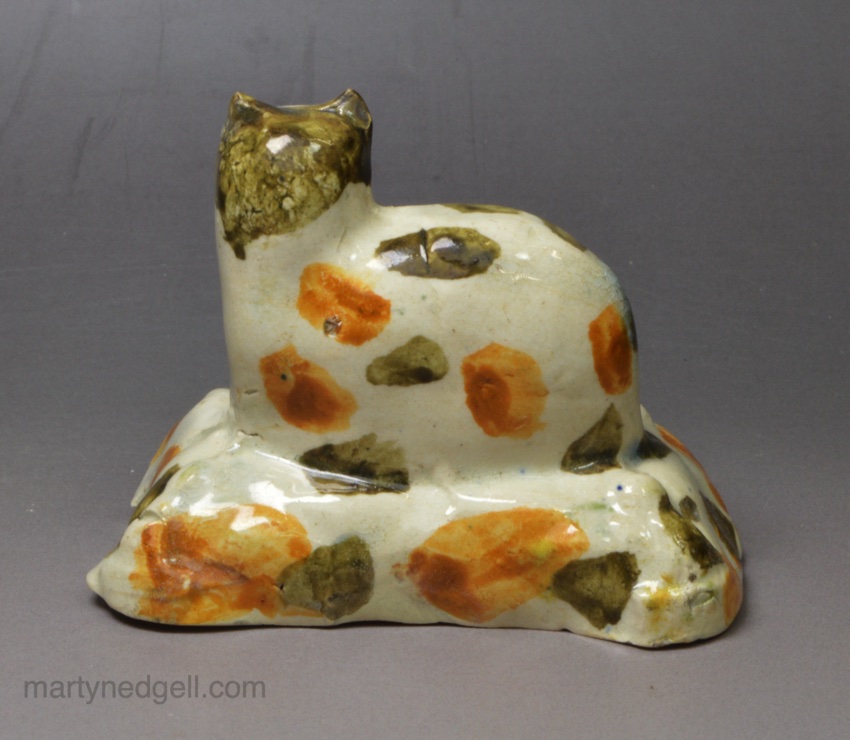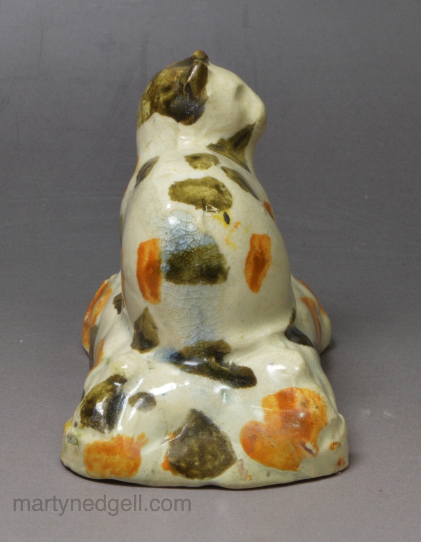 / Prattware pottery cat decorated with colours under a pearlware glaze, circa 1800