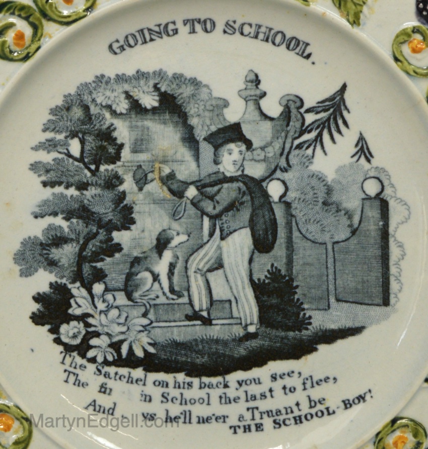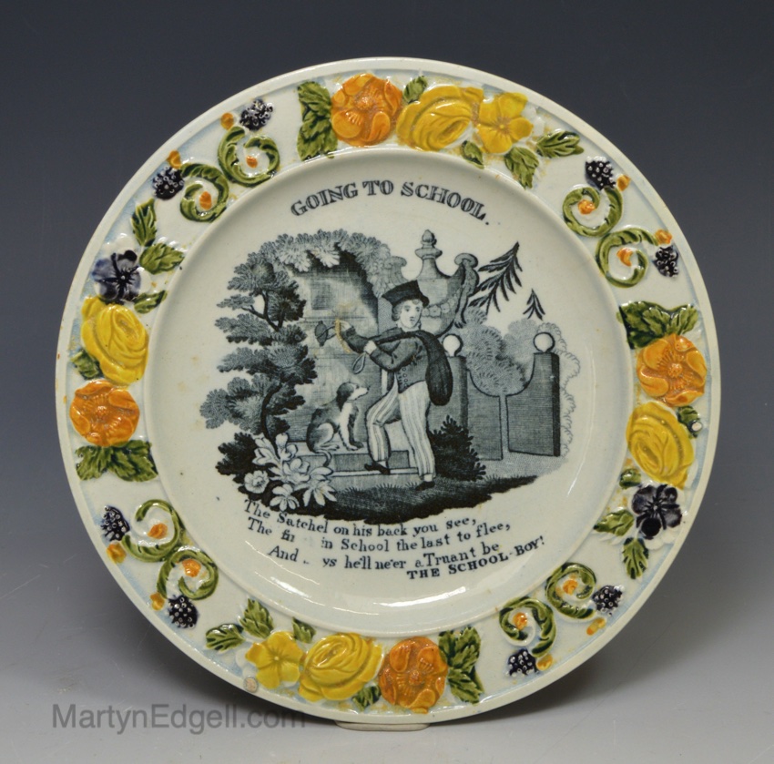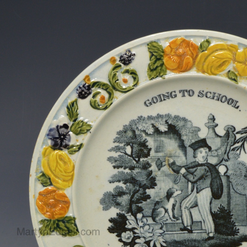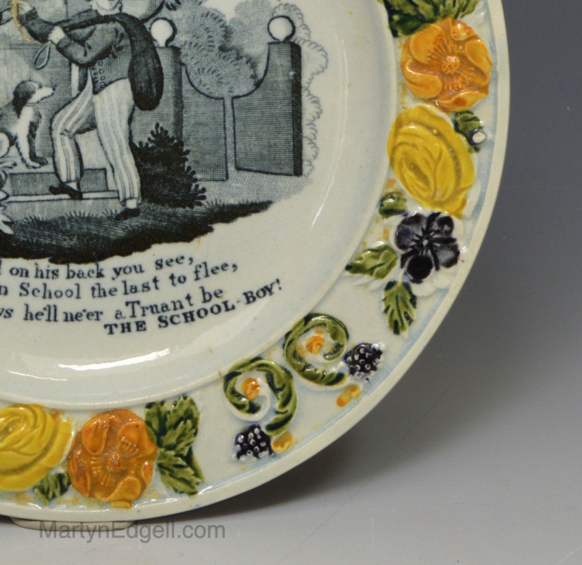 Prattware pottery child’s plate ‘THE SCHOOL BOY’, circa 1820
