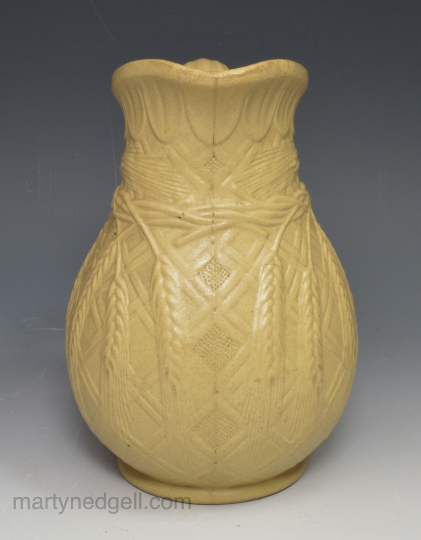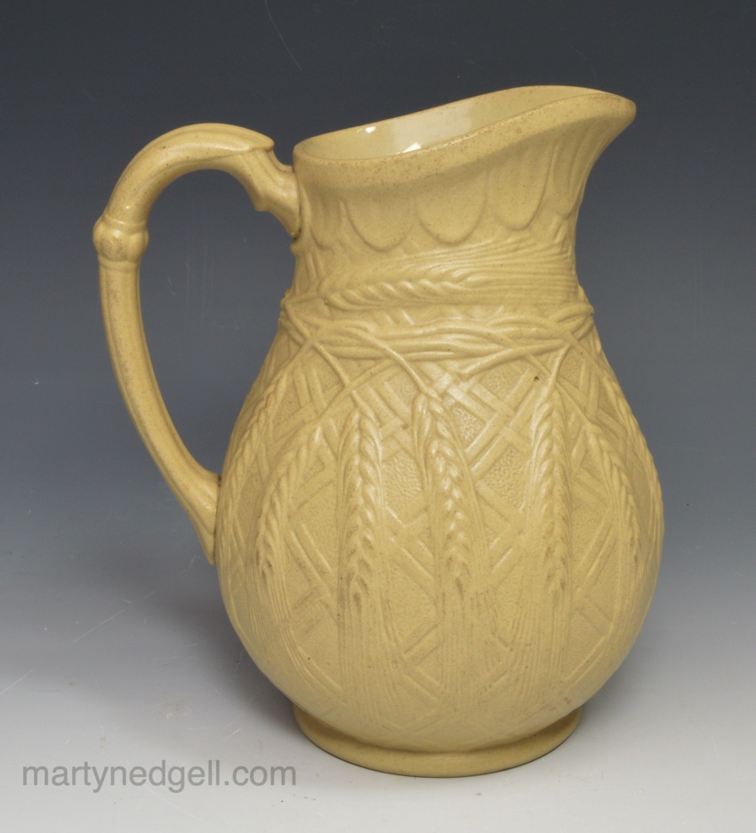 Relief moulded stoneware jug, circa 1850, probably Ridgeways