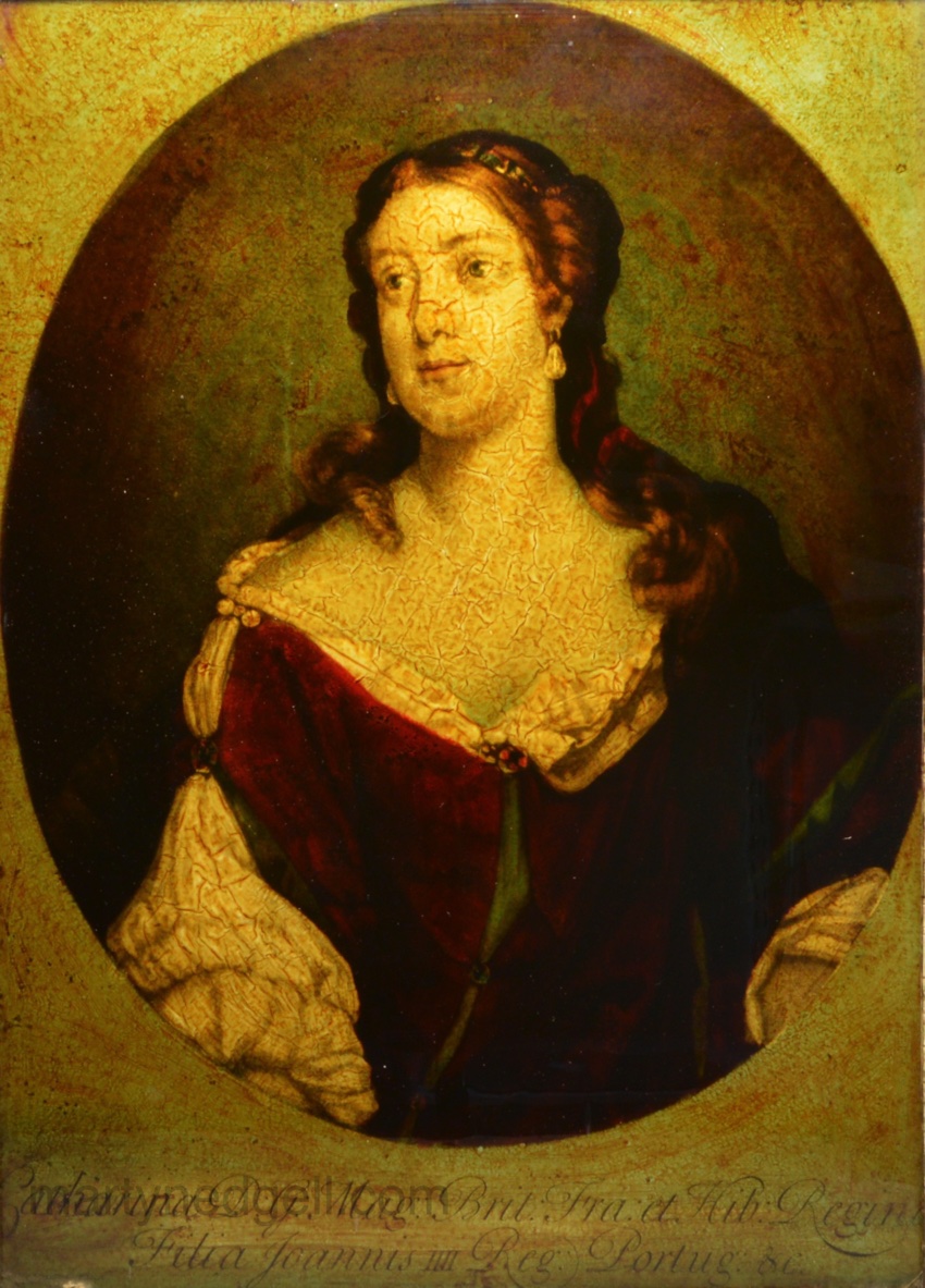 / Reverse print on glass ‘Catherine of Briganza’, circa 1780
