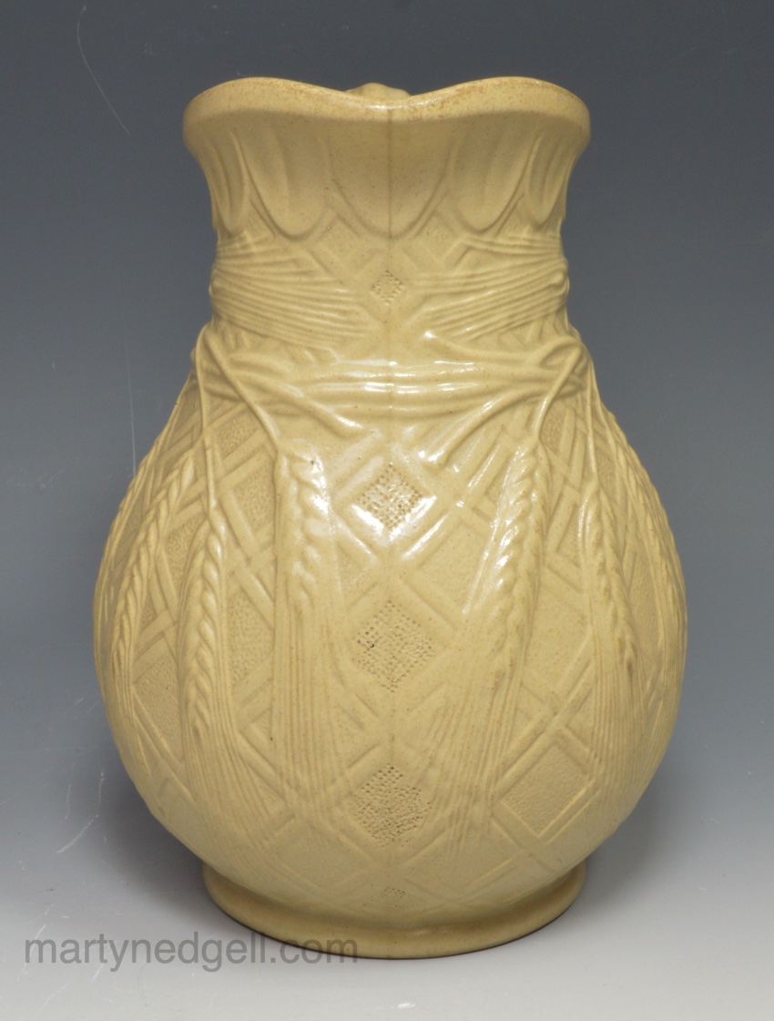 Relief moulded stoneware jug, circa 1850, probably Ridgeways