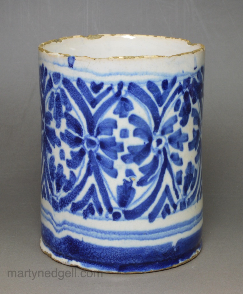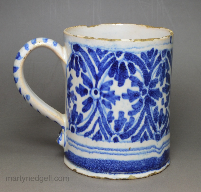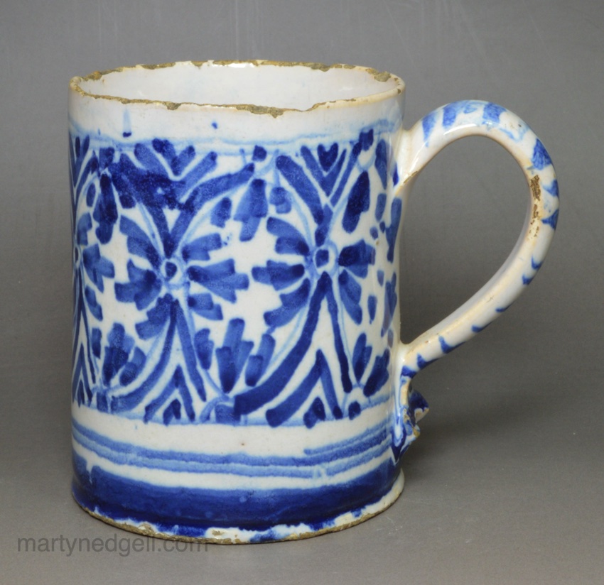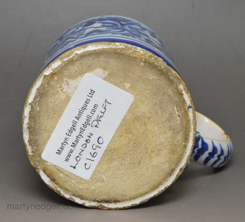 / Small London delft mug painted in blue, circa 1690