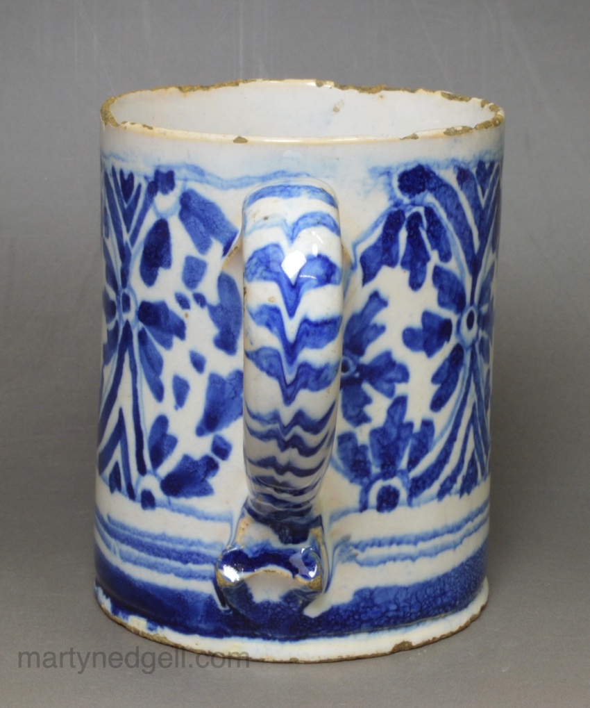 Small London delft mug painted in blue, circa 1690