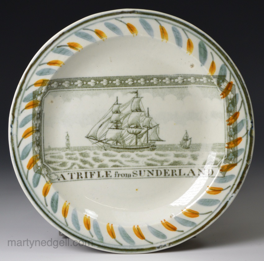 / Small prattware pottery plate ‘A TRIFLE from SUNDERLAND’, circa 1825