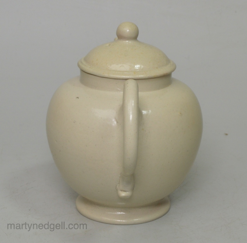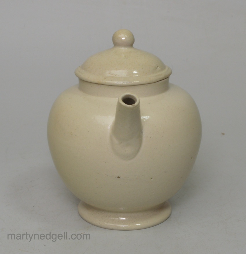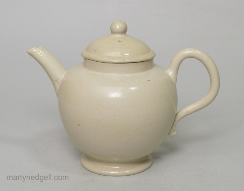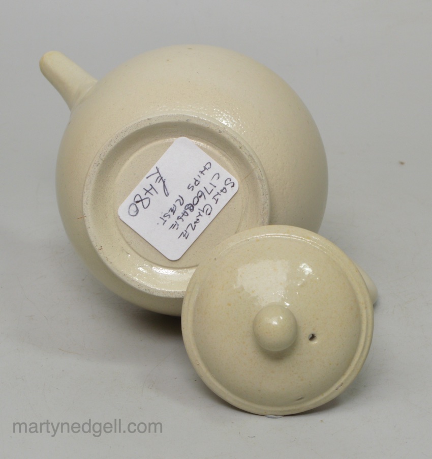 There is a thought that this size might be a toy. I think that it is not as it would hold two tea bowls full of tea and I have never seen other pieces of saltglaze to scale.